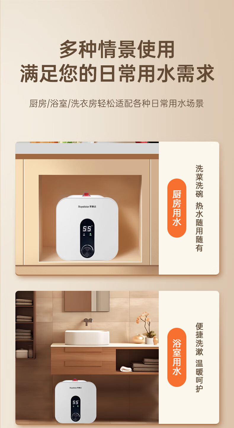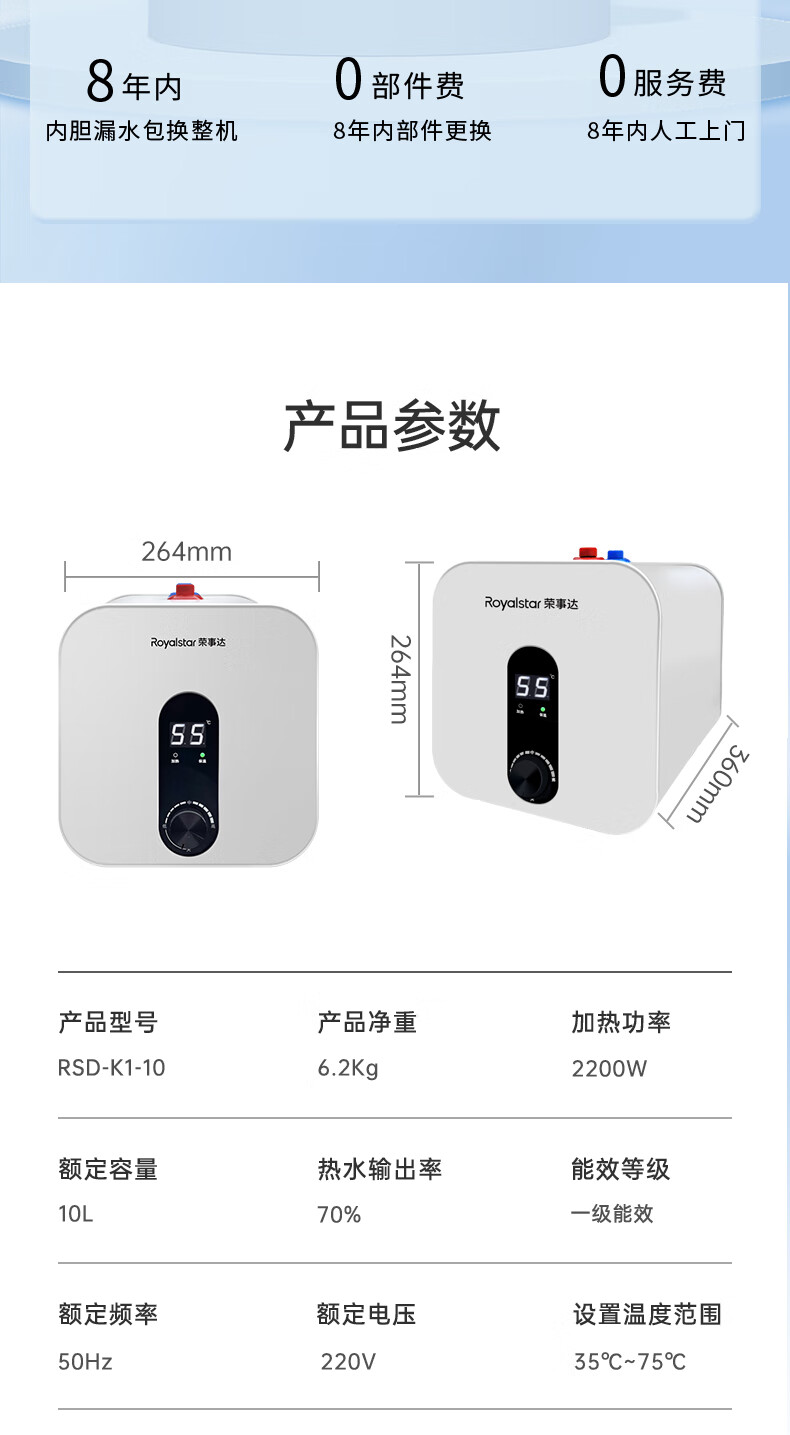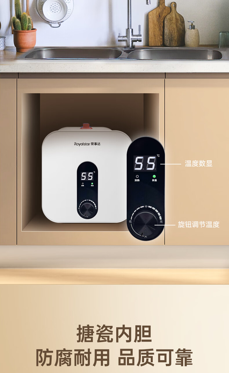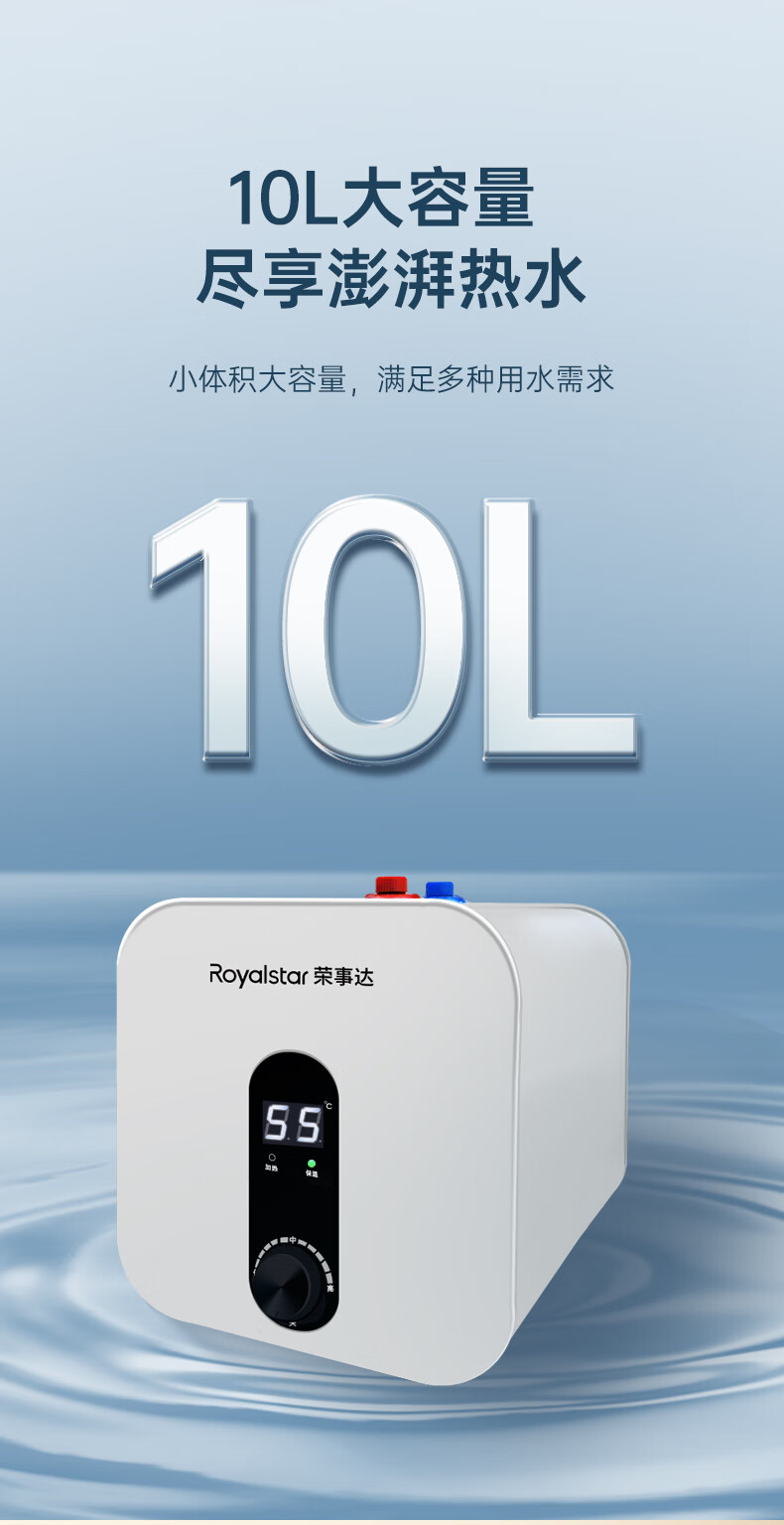 荣事达/Royalstar RSD-K1-10 热水器 10升小厨宝上出水 2200W家用厨房速热大水量电热水器 一级能效节能省电