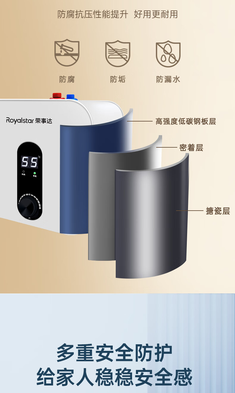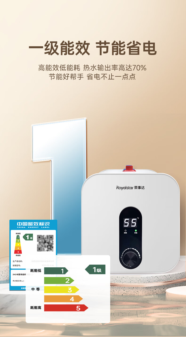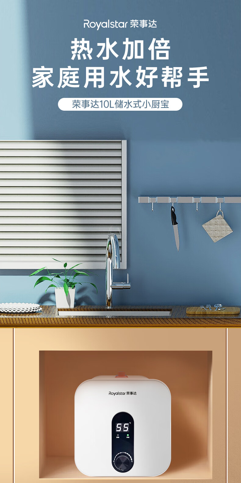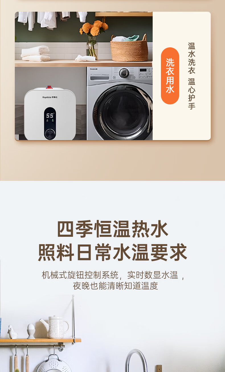 荣事达/Royalstar RSD-K1-10 热水器 10升小厨宝上出水 2200W家用厨房速热大水量电热水器 一级能效节能省电