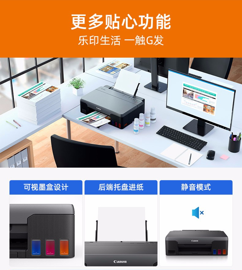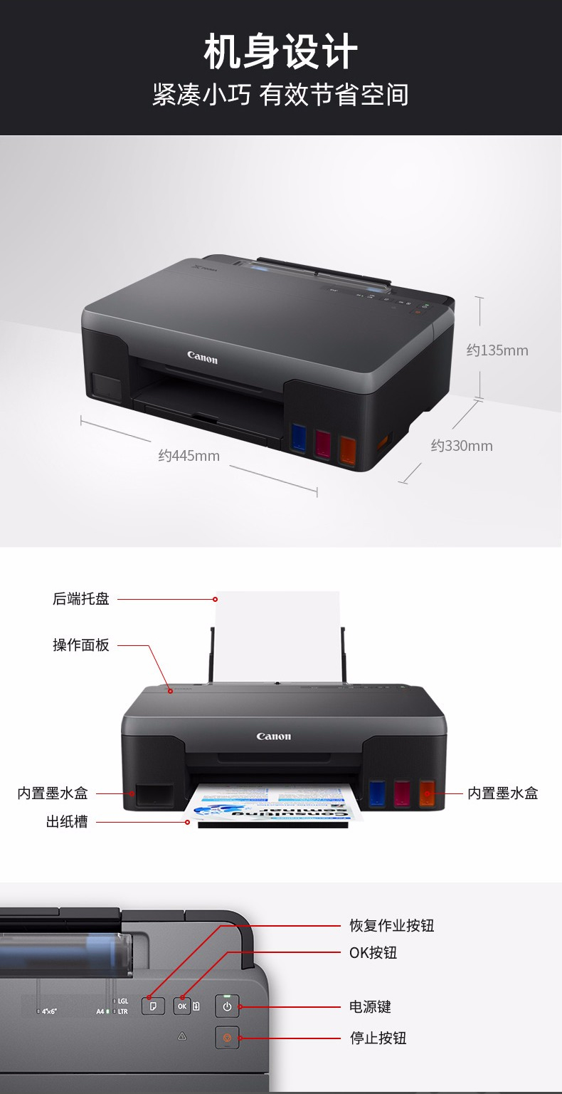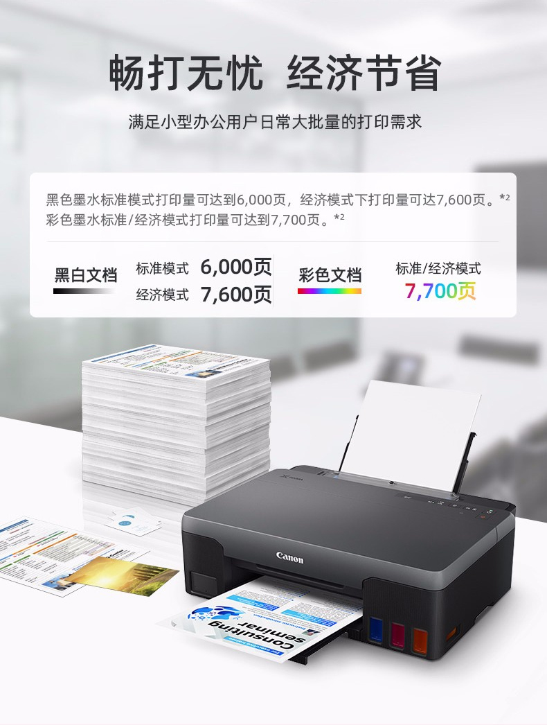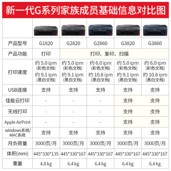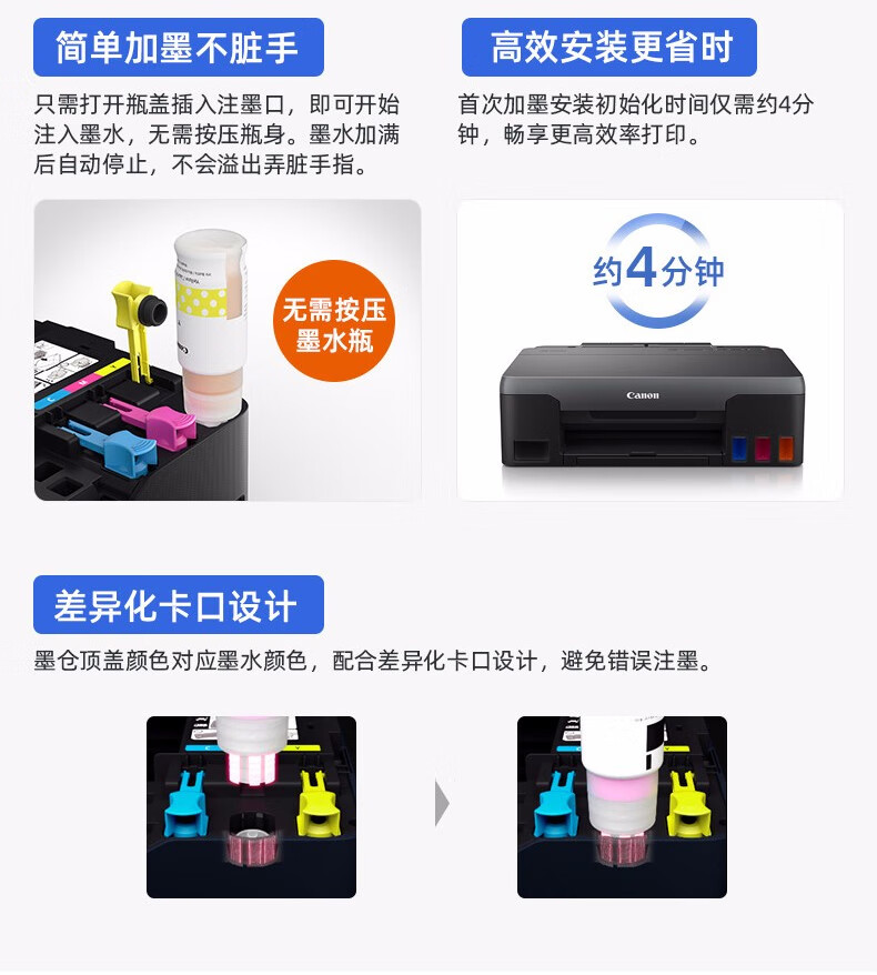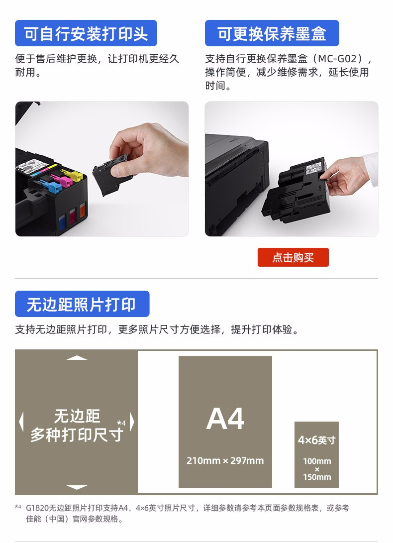 佳能/CANON G1820 A4 彩色打印机 墨仓式家用照片打印机 加墨式彩色文档打印小型办公 G1820标配+原装四色墨水一套