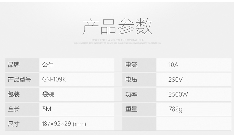 公牛/BULL GN-109K 电源插座和转换器 新国标插座/插线板/插排/排插/接线板/拖线板