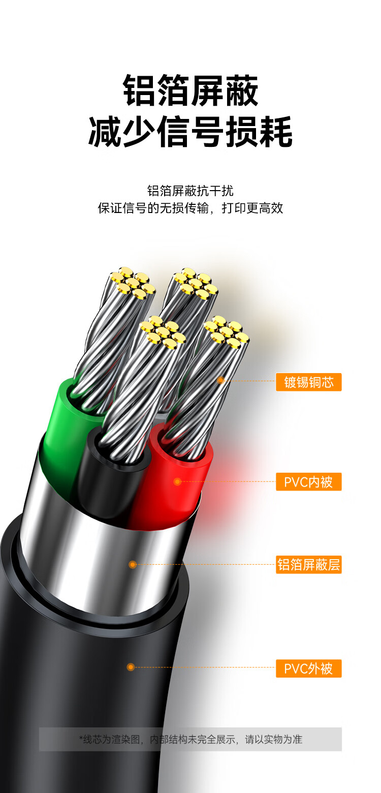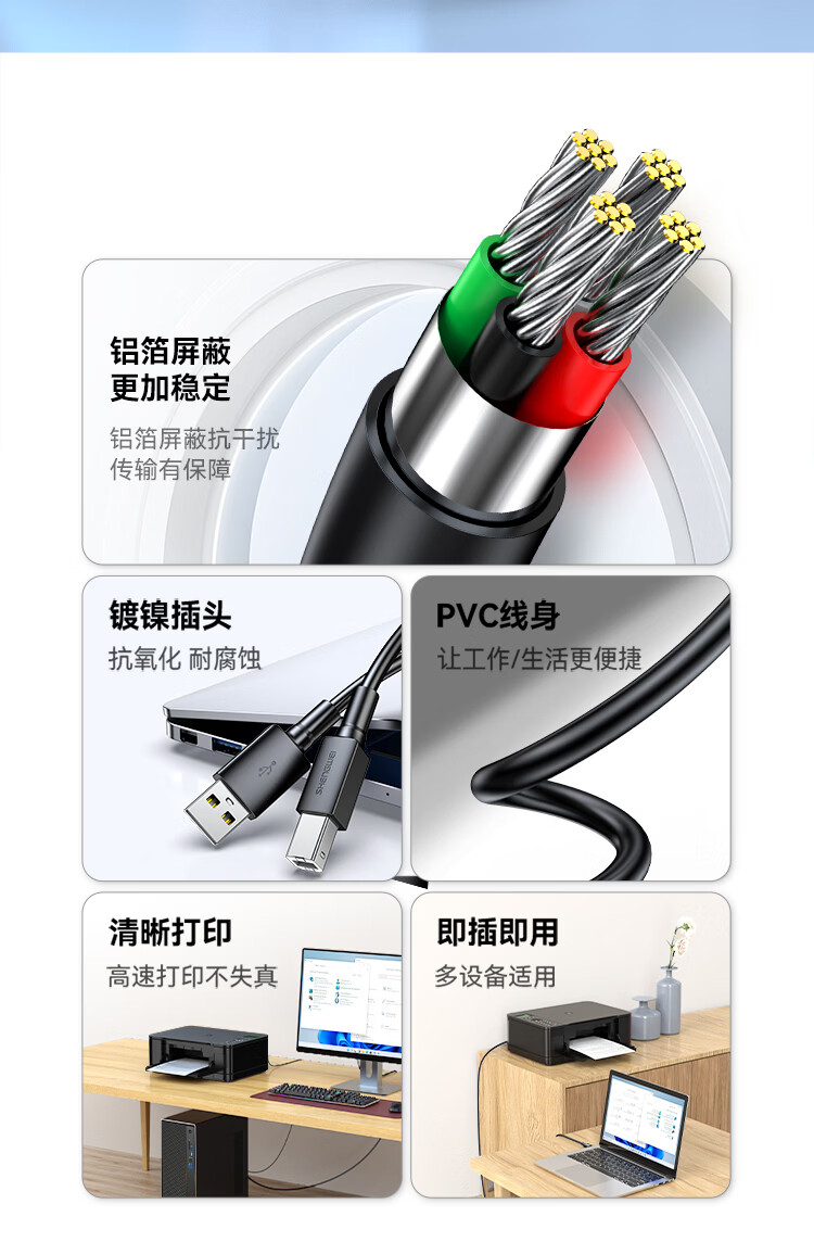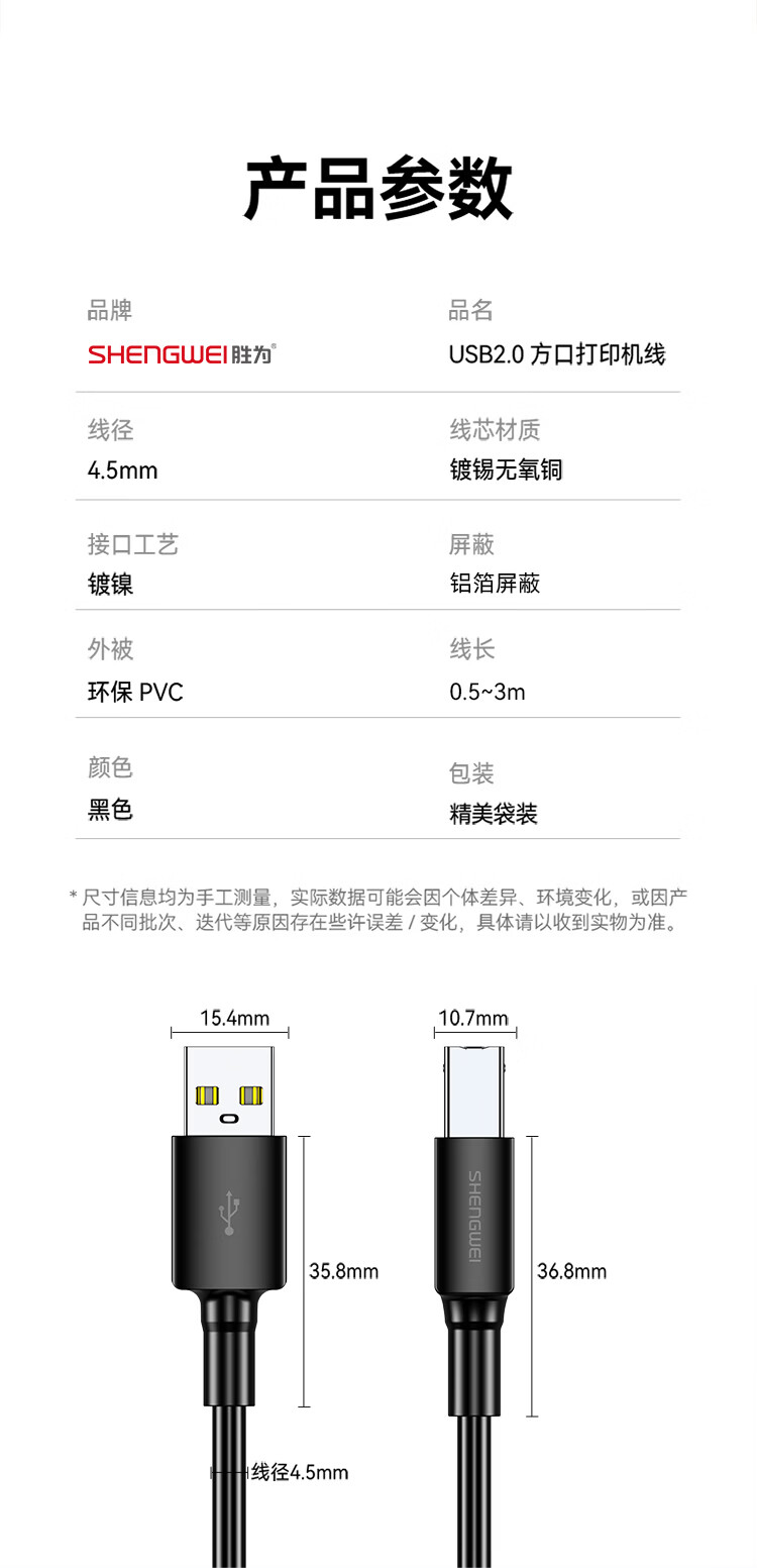 胜为/shengwei AUB1020G 数据线 打印机数据线USB2.0高速打印线电源接口连接线