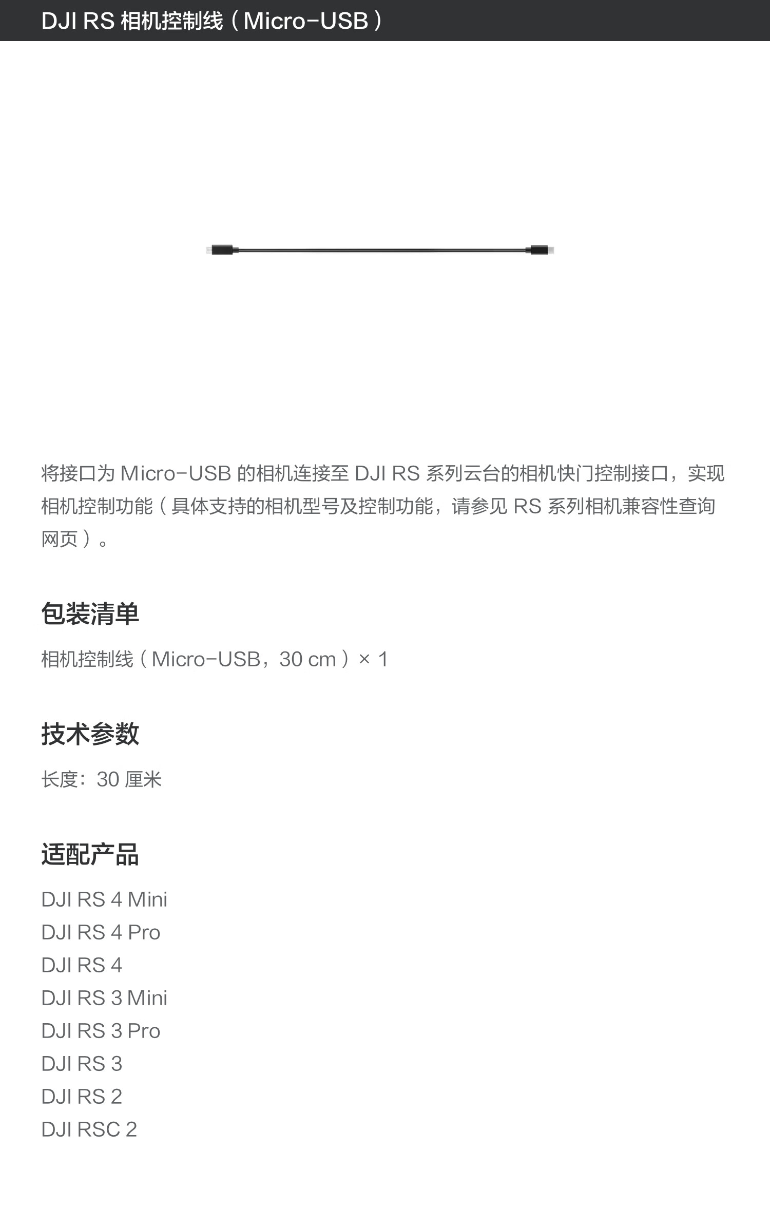 大疆/DJI DJI RS 4 数据线 相机控制线(Micro-USB)DJI RS 4 系列/RS 3 系列/RSC 2/RS 2配件 大疆云台稳定器配件