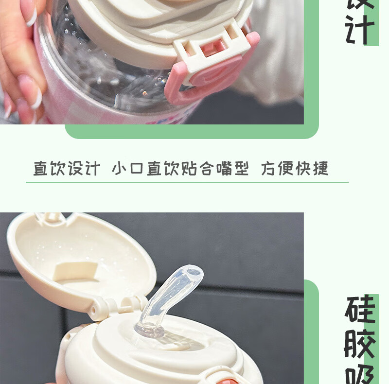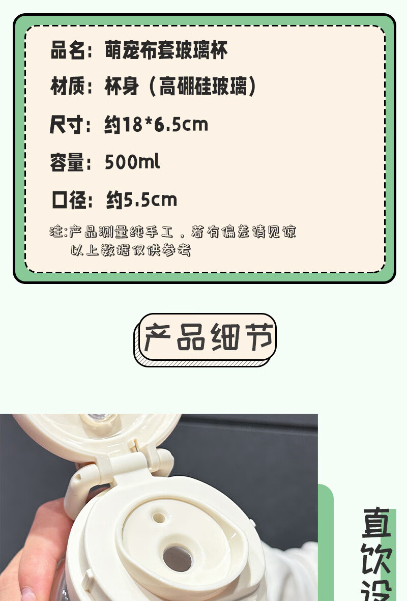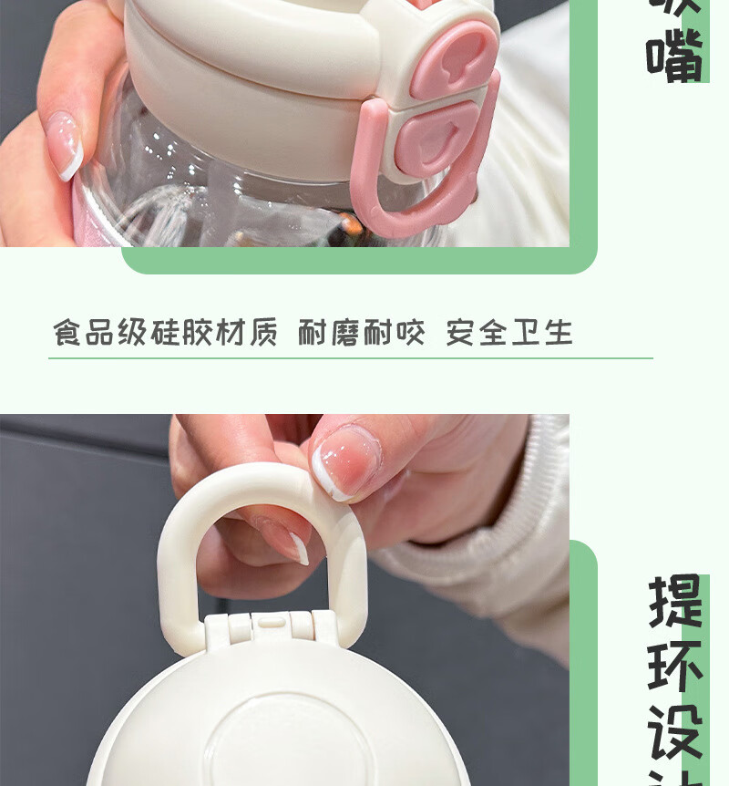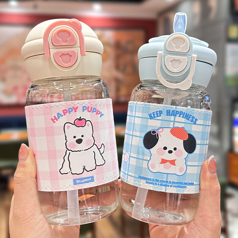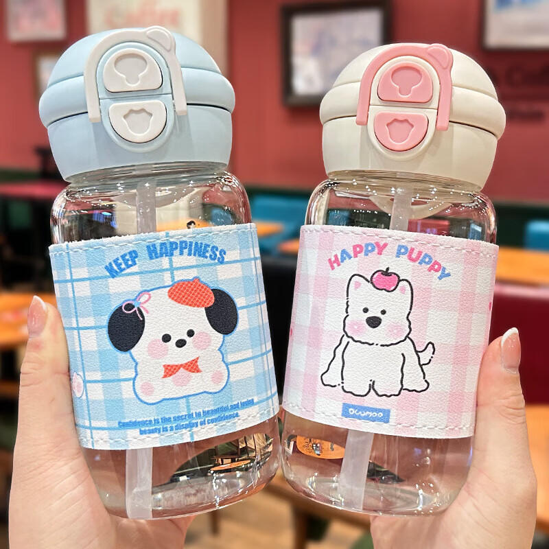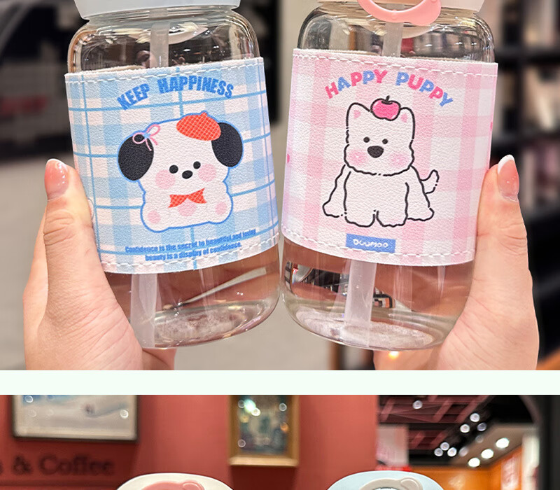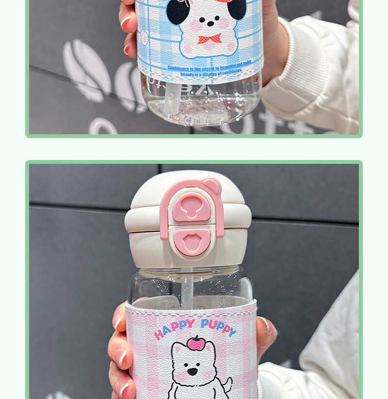 华象 8805 杯 隔热玻璃杯卡通吸管杯学生耐高温便携水杯送皮套