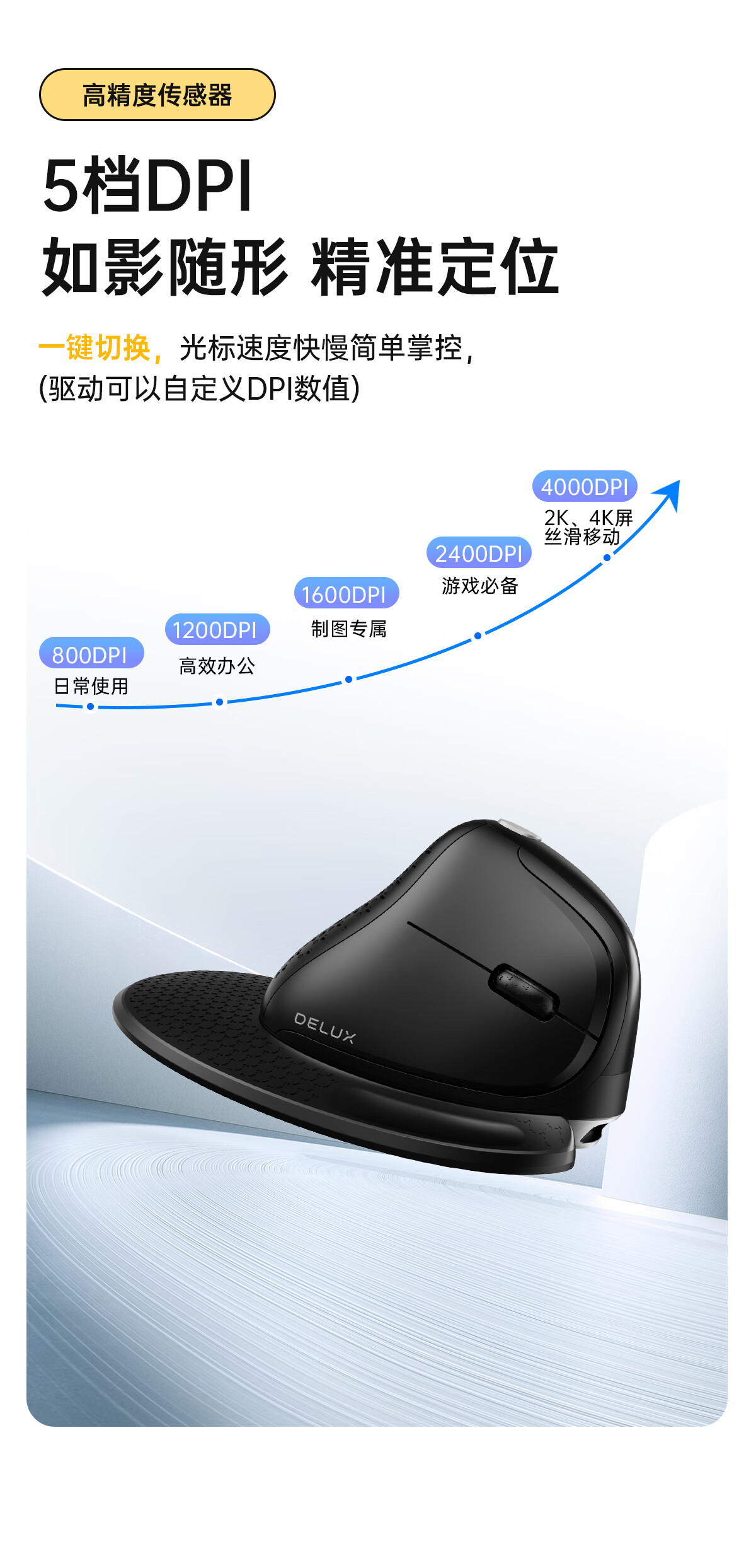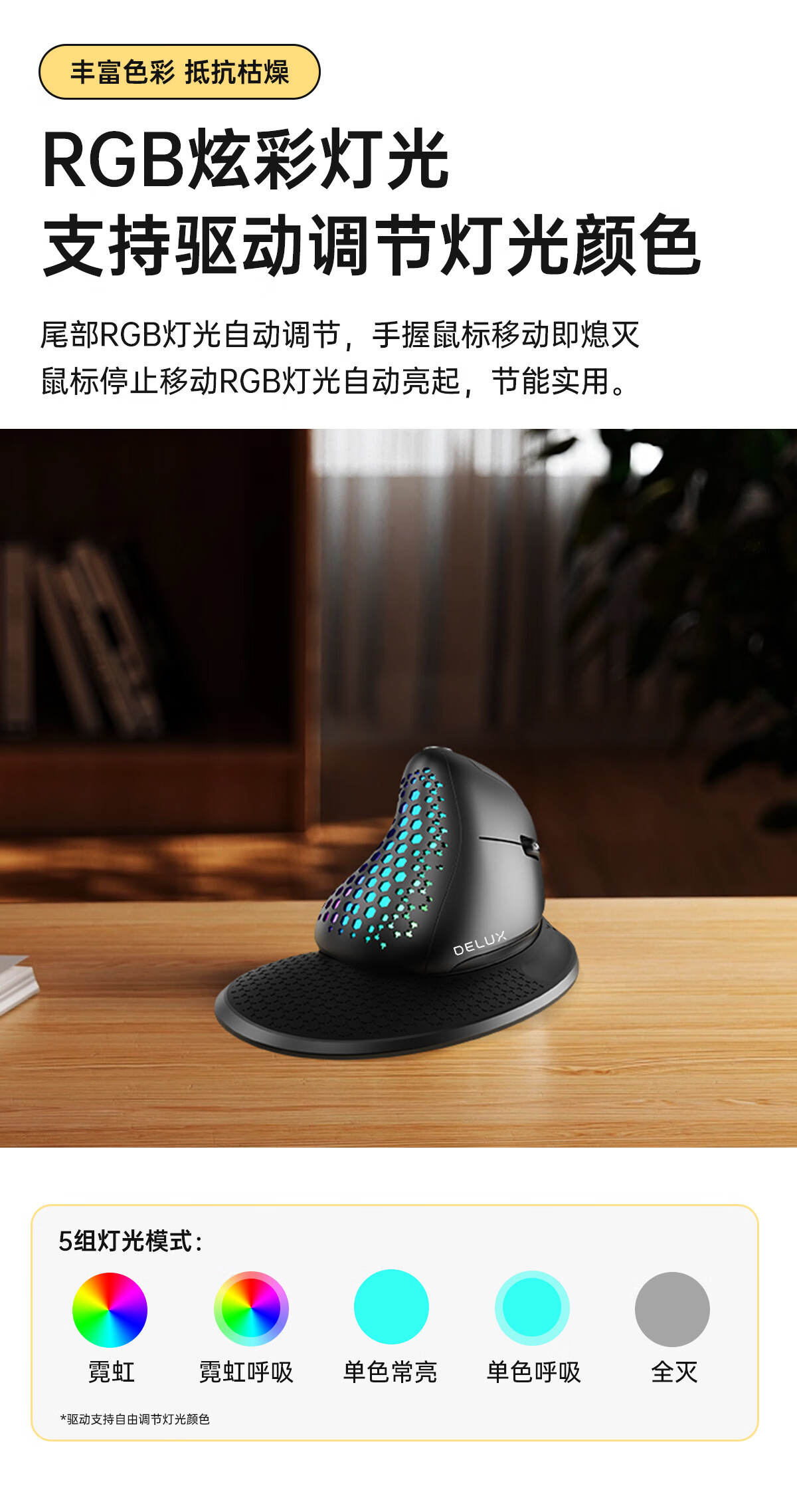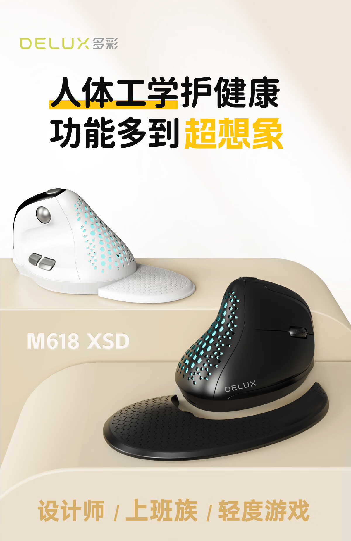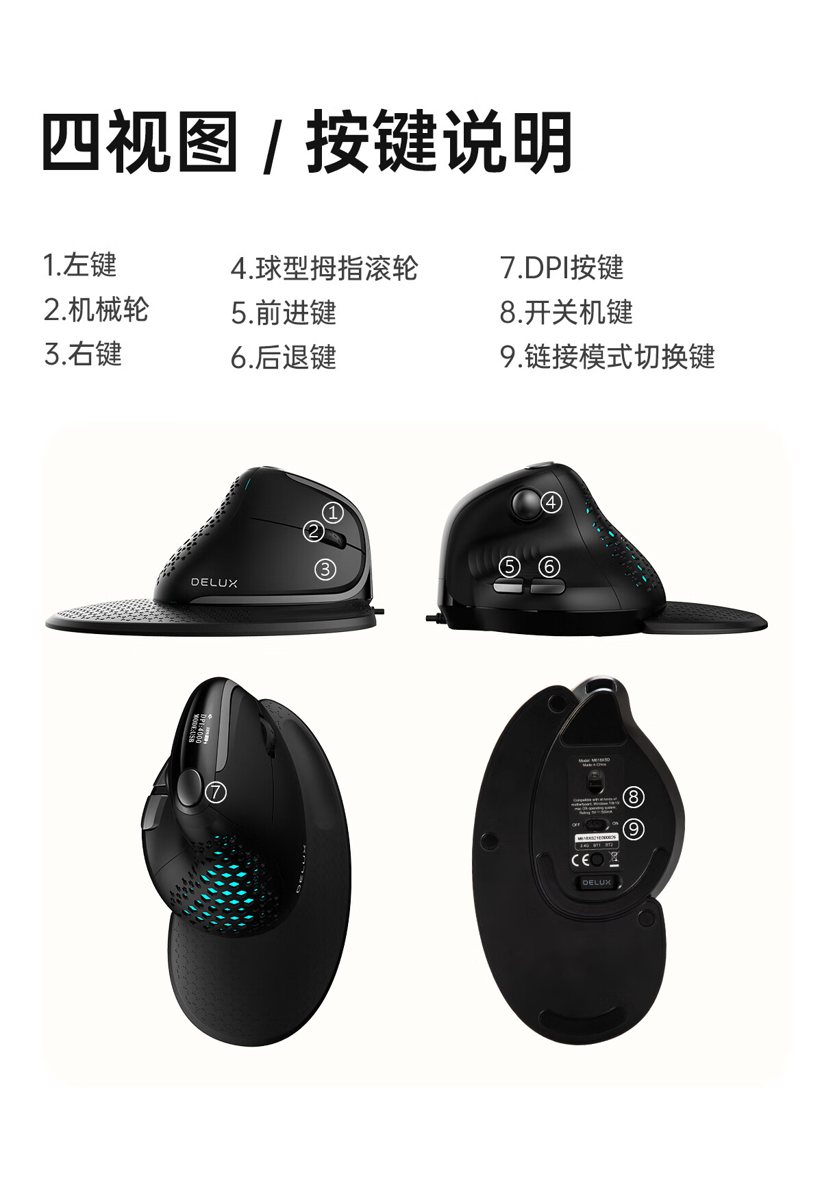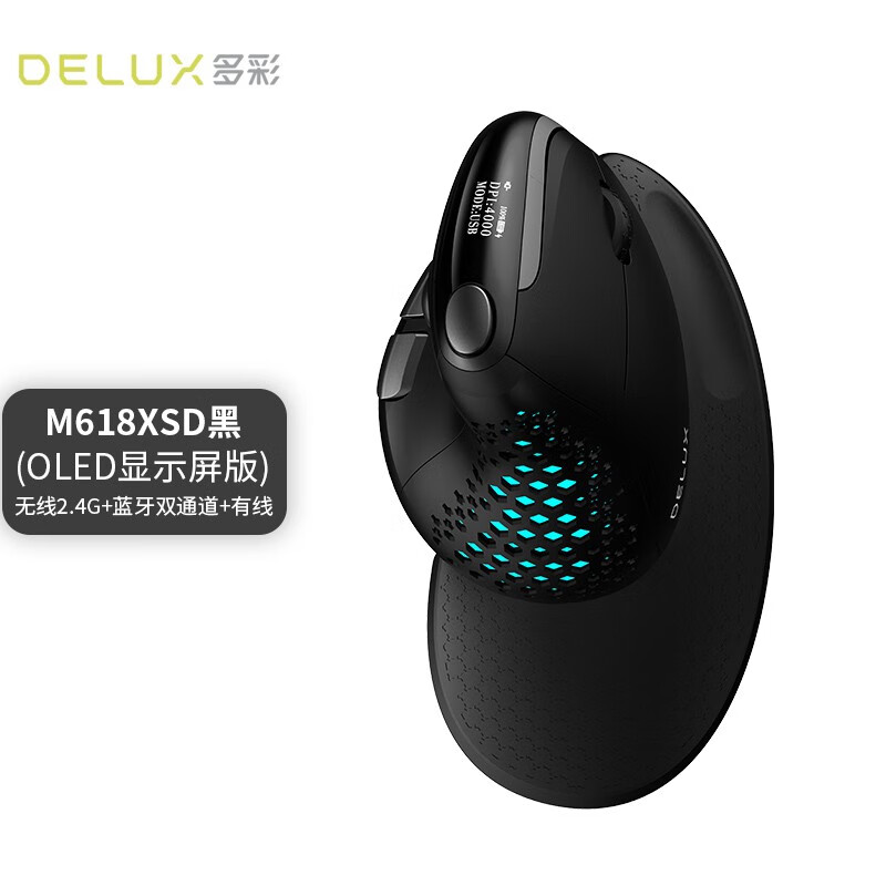多彩/Delux M618 鼠标 垂直鼠标 人体工学鼠标 无线蓝牙有线三模鼠标 电脑笔记本办公鼠标 可充电