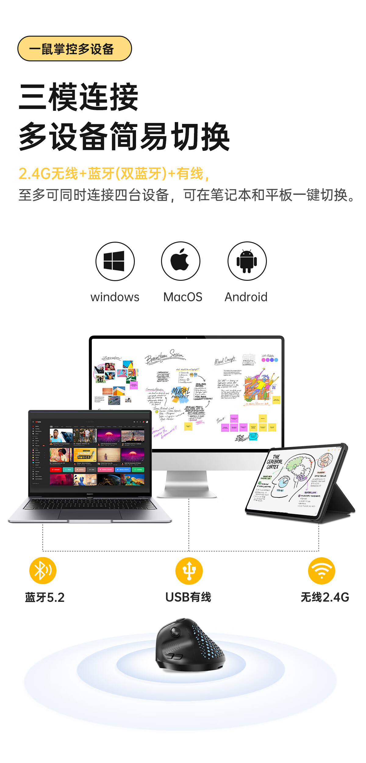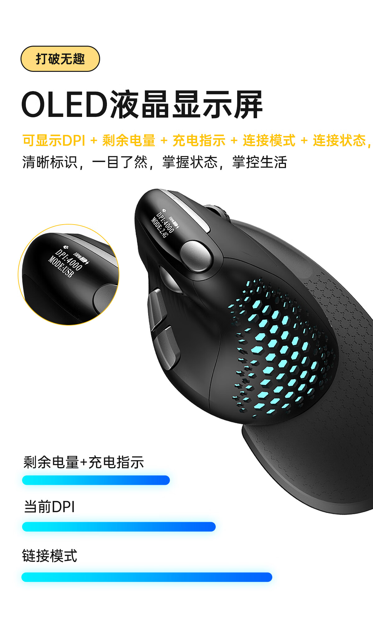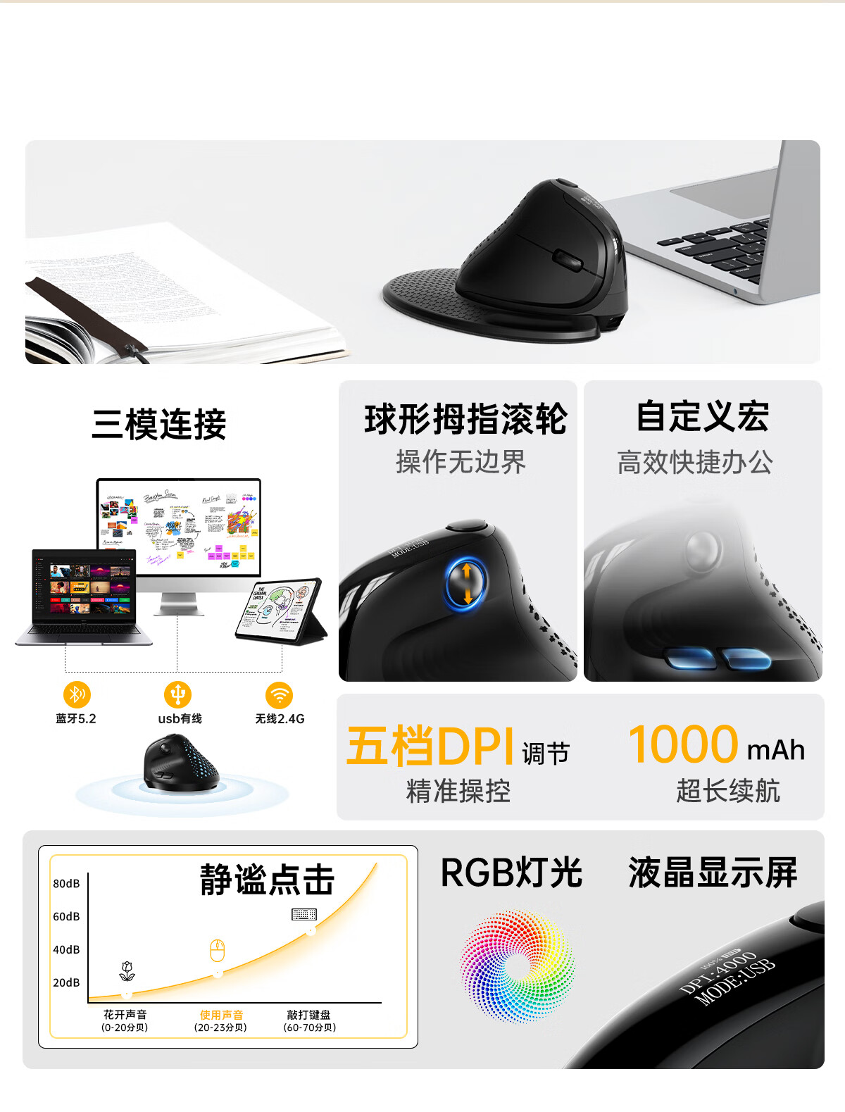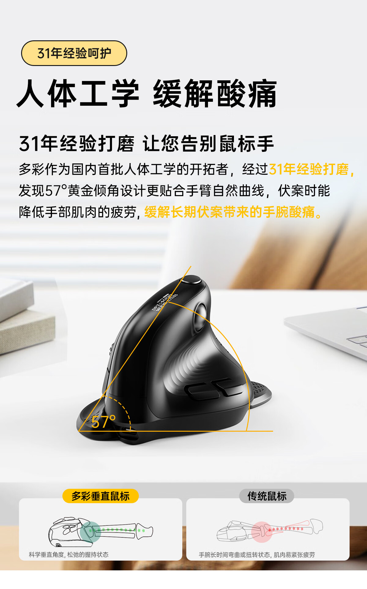 多彩/Delux M618 鼠标 垂直鼠标 人体工学鼠标 无线蓝牙有线三模鼠标 电脑笔记本办公鼠标 可充电