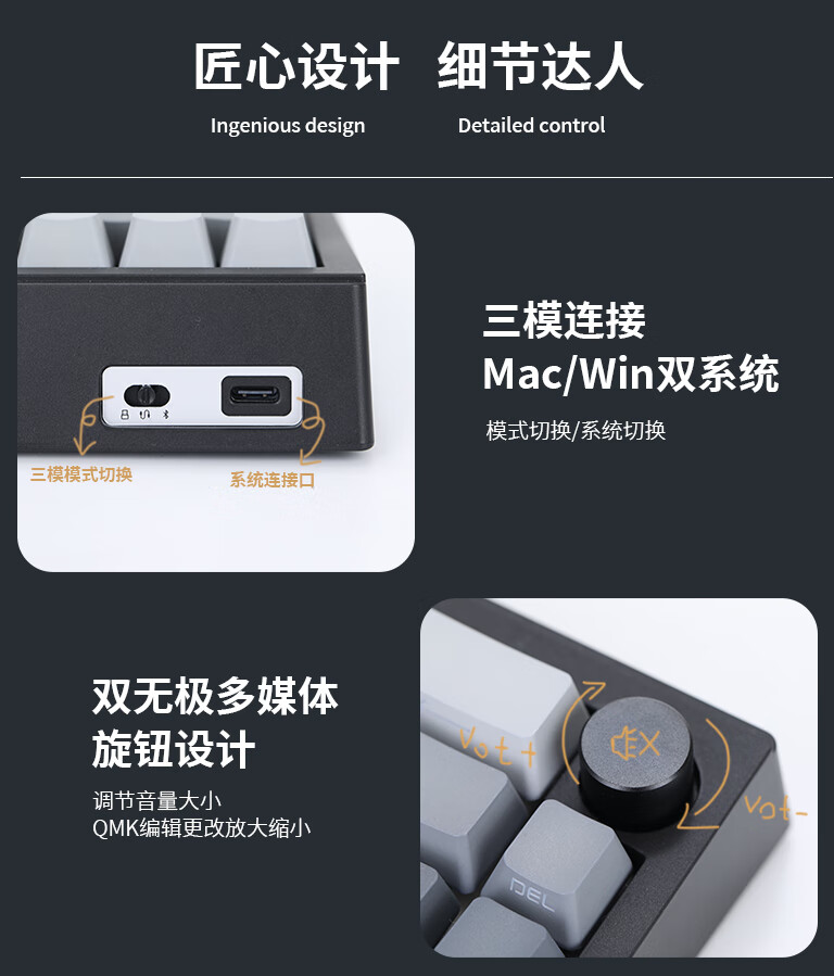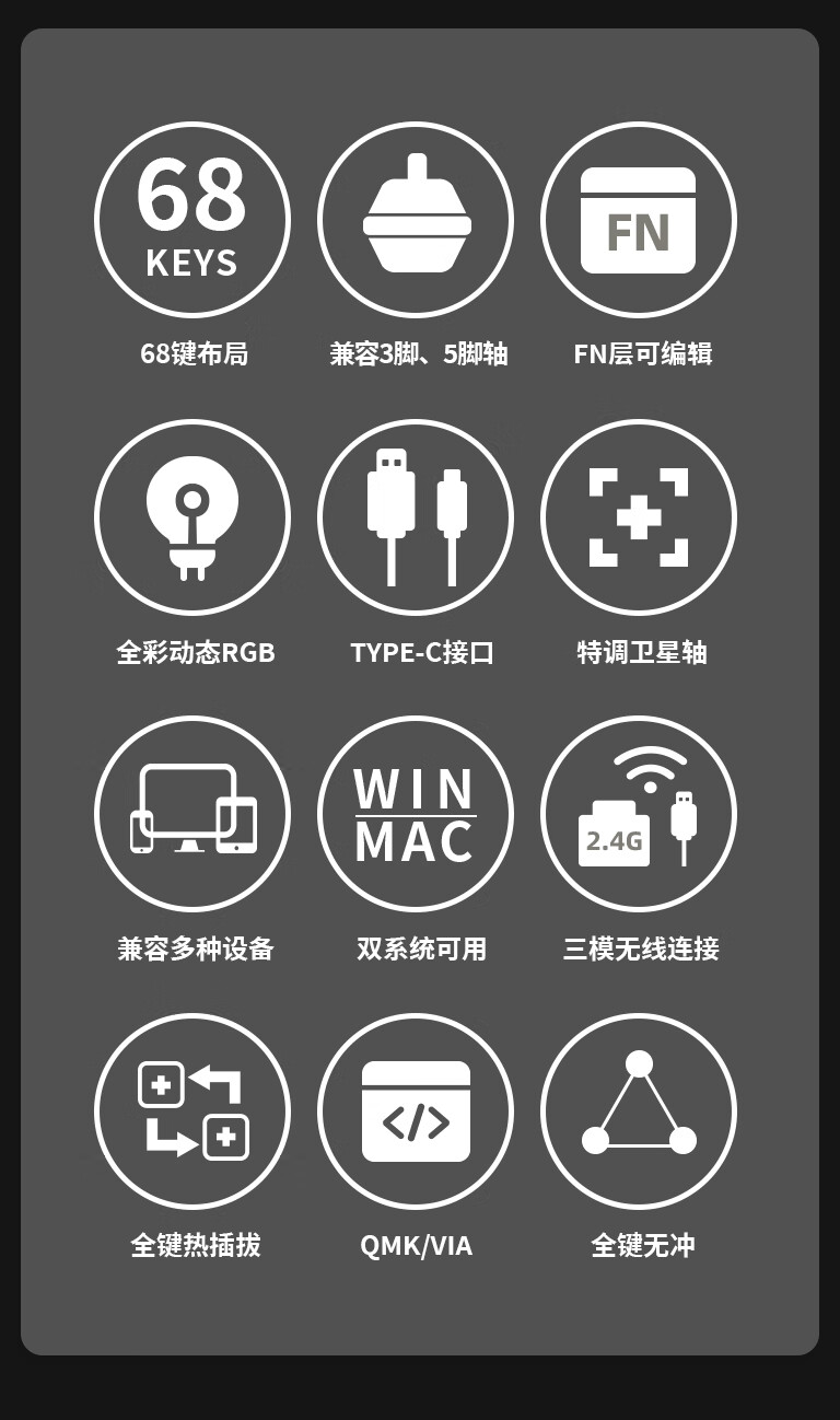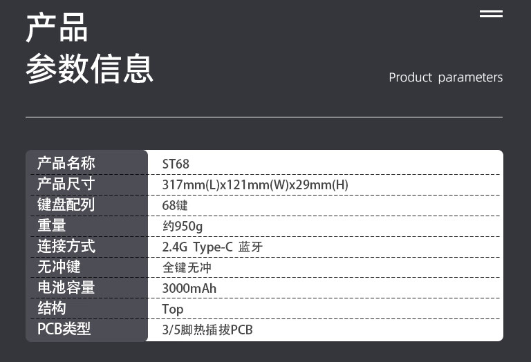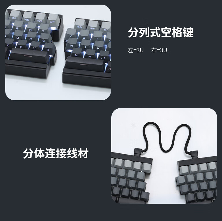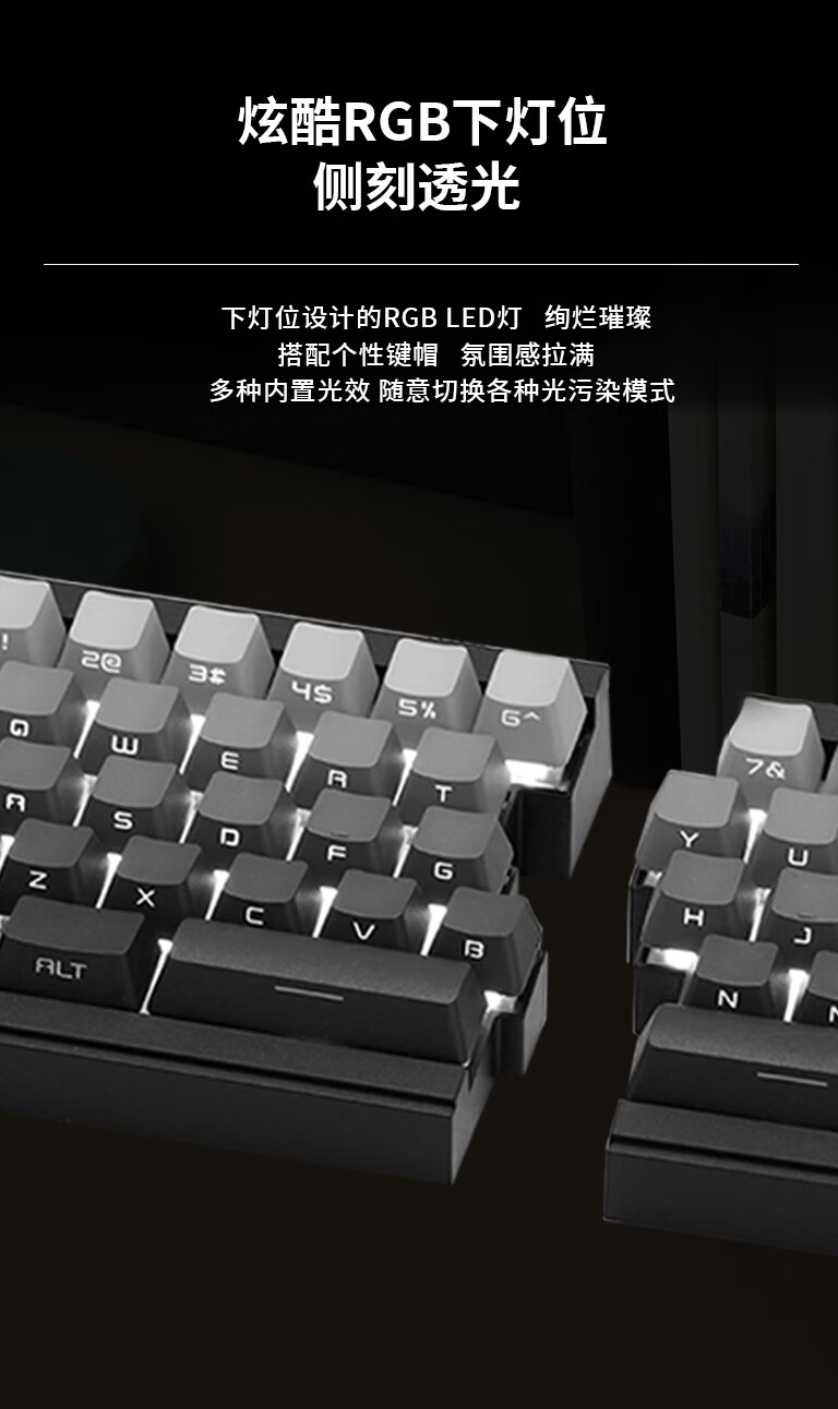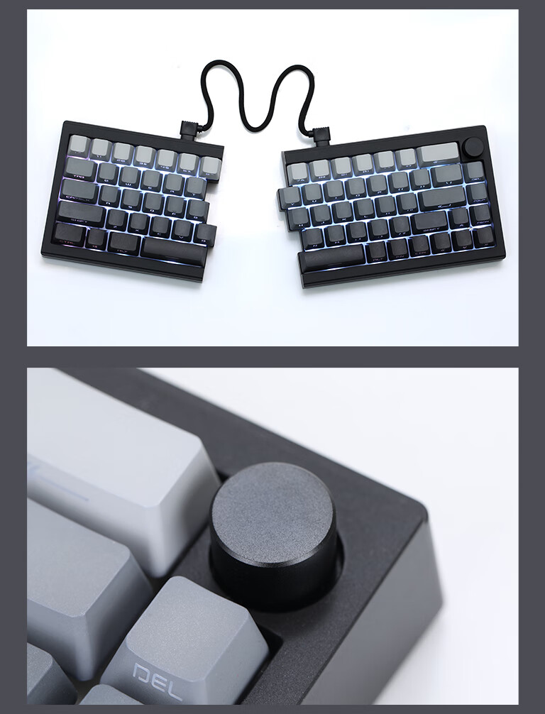 佐赫ST68分裂式分体式机械键盘无线蓝牙客制化人体工学办公静音 ST68黑色+极昼 赤璃轴【声音沉闷】