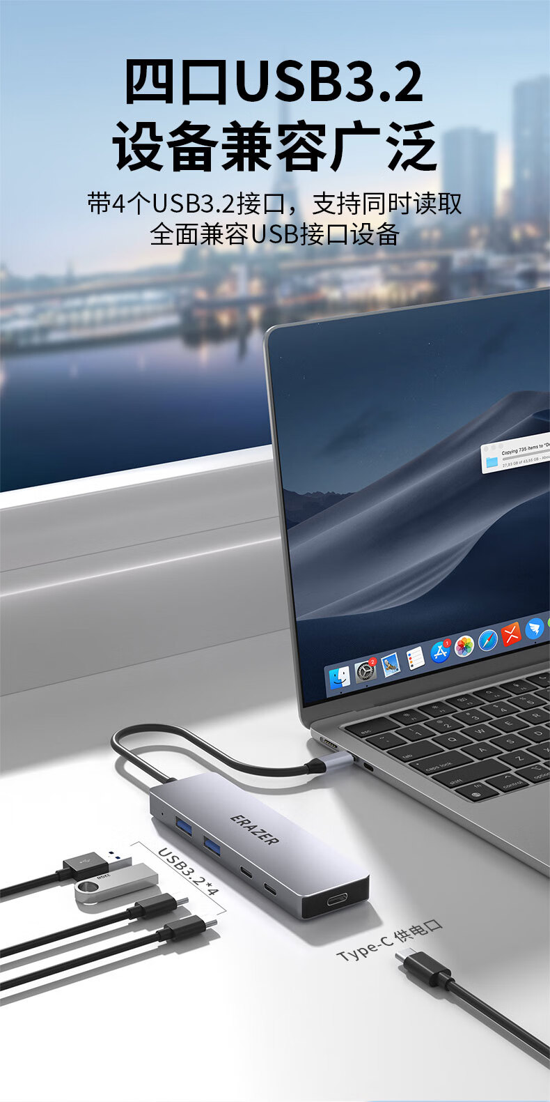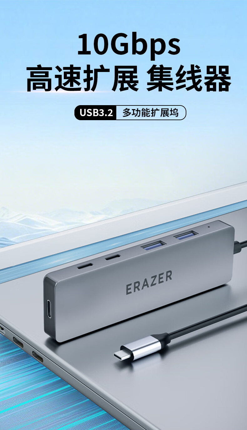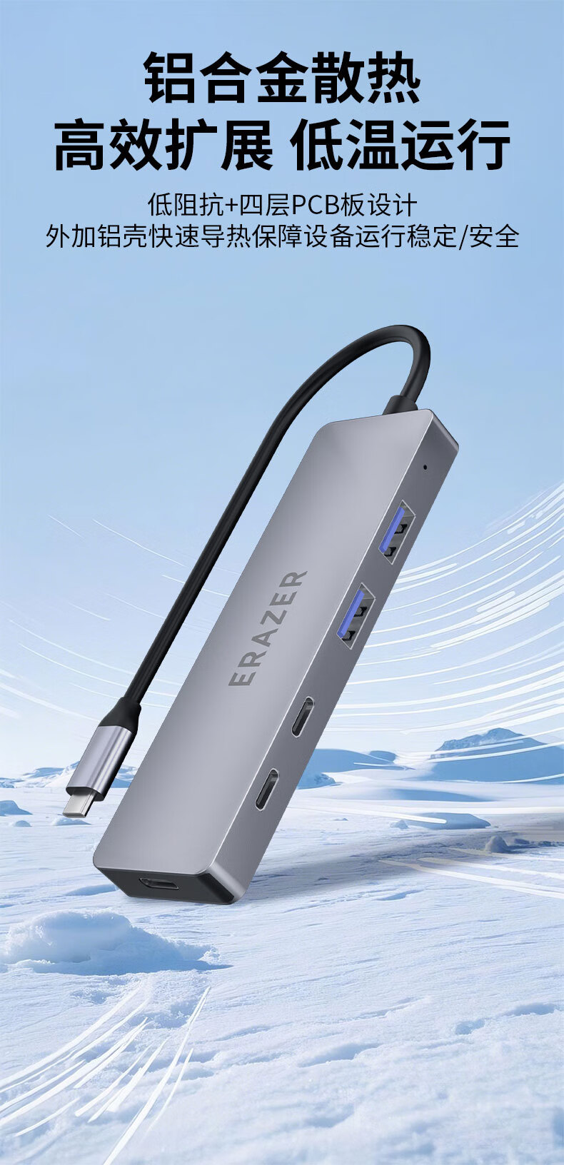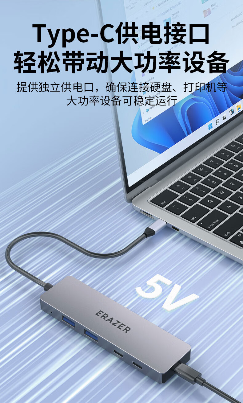 异能者/ERAZER HC05 Pro 集线器 异能者Type-C扩展坞USB3.2分线器10Gbps高速拓展坞集线器HUB笔记本电脑延长线转换器