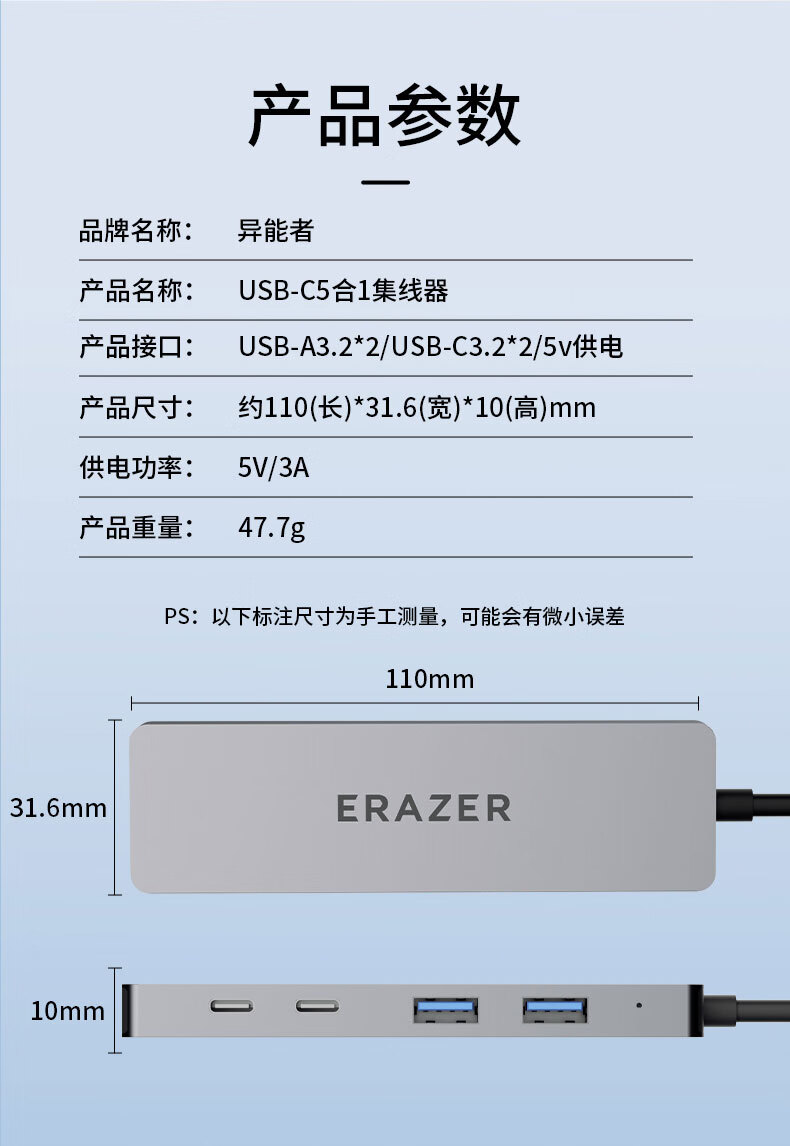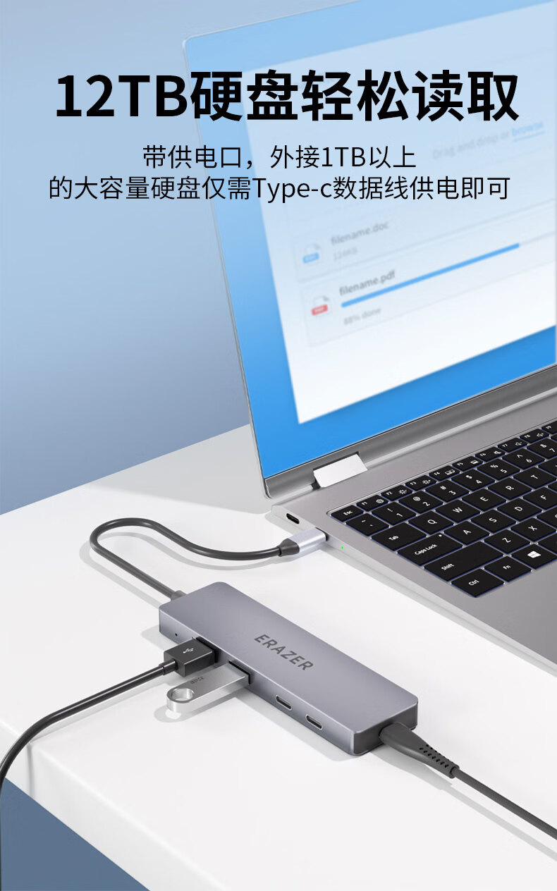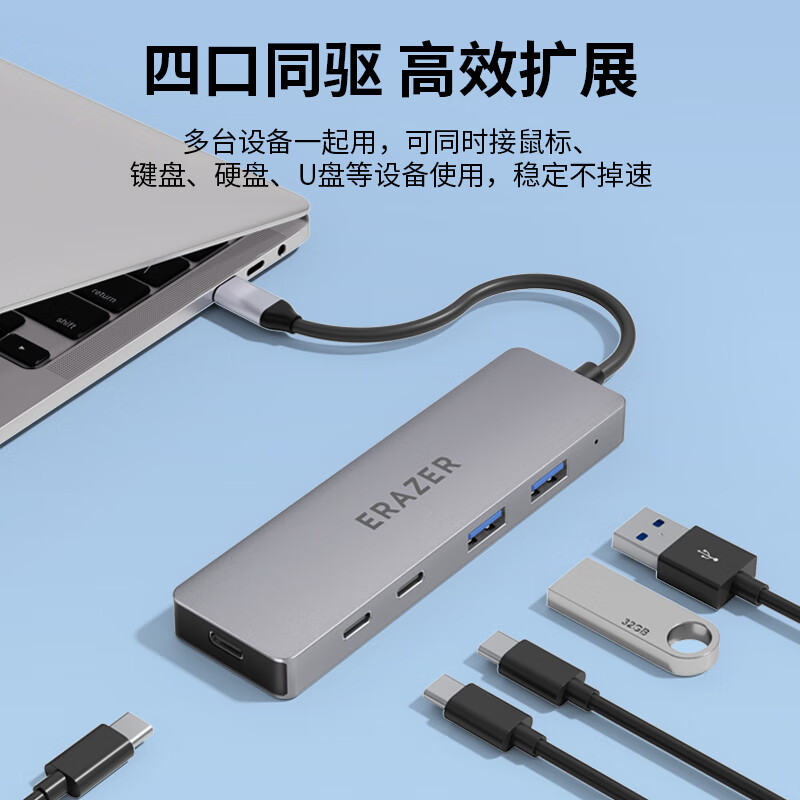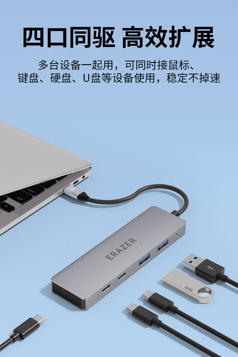 异能者/ERAZER HC05 Pro 集线器 异能者Type-C扩展坞USB3.2分线器10Gbps高速拓展坞集线器HUB笔记本电脑延长线转换器