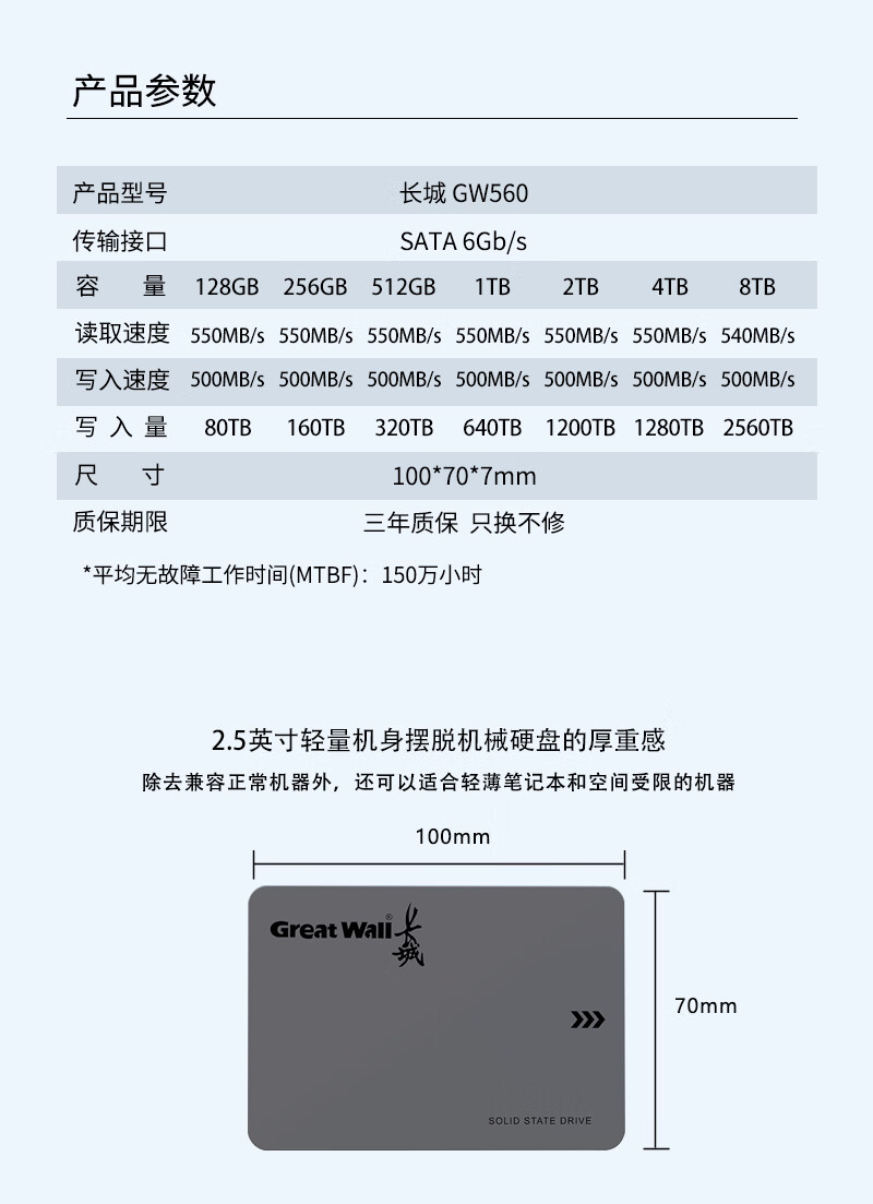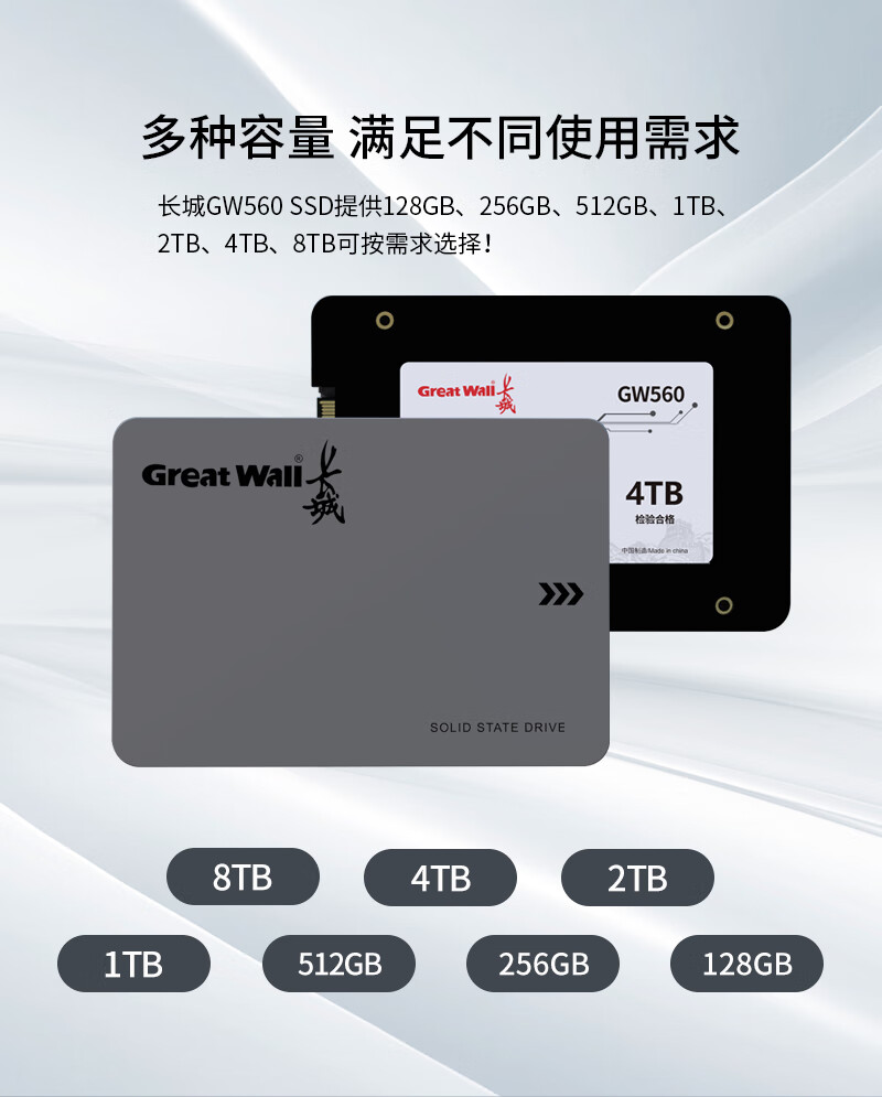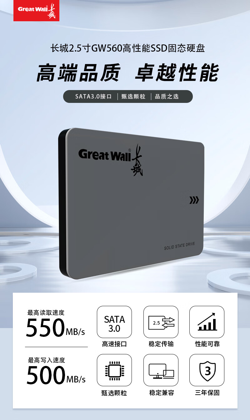 长城/GreatWall GW560 移动硬盘 512GB SSD固态硬盘 SATA3.0接口 读速540MB/S台式机/笔记本通用
