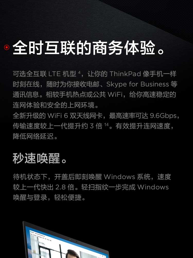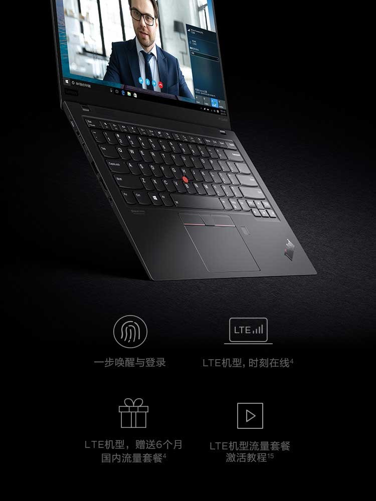 联想ThinkPad X1 Carbon 2020英特尔酷睿i5 14英寸轻薄笔记本电脑 i5-10210U 8GB 512G(36CD) FHD 背光键盘 Win10 office
