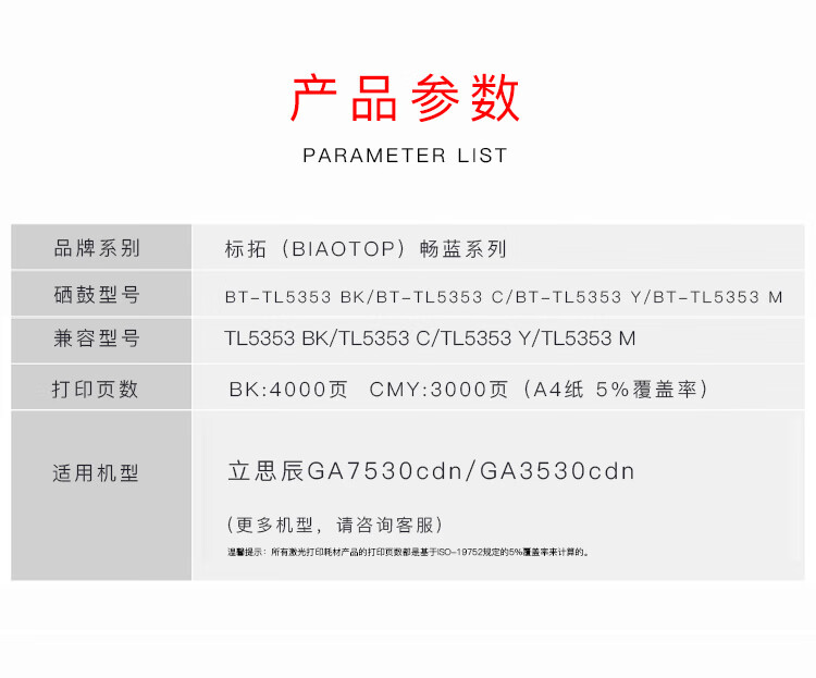 标拓/Biaotop TL-5353 粉盒 彩色 适用立思辰GA7530cdn/GA3530cdn打印机