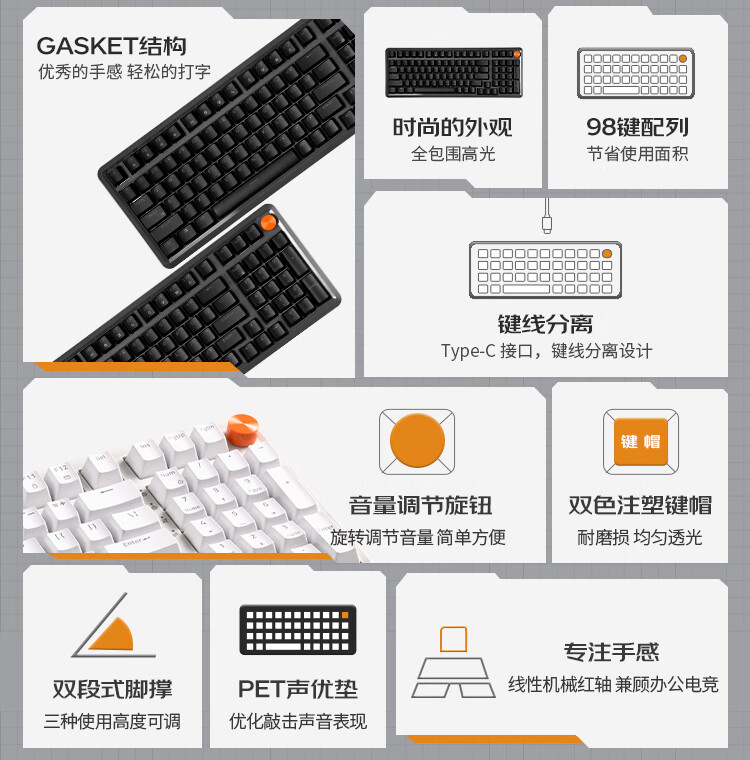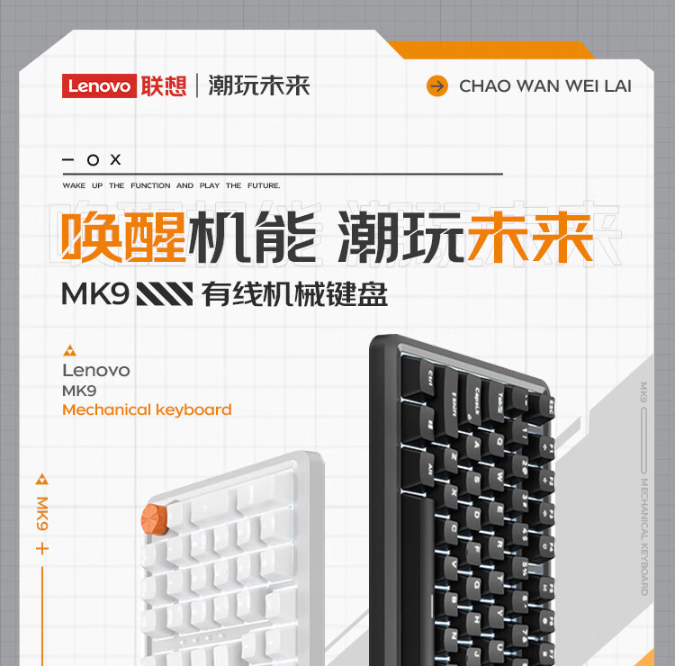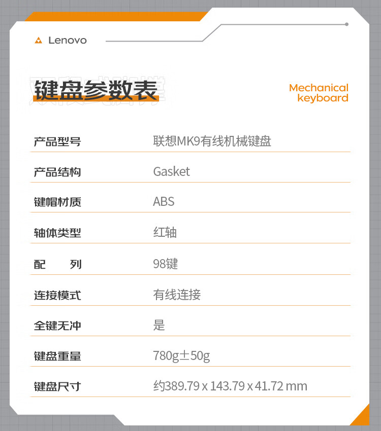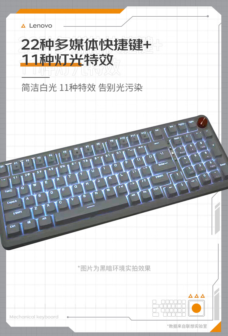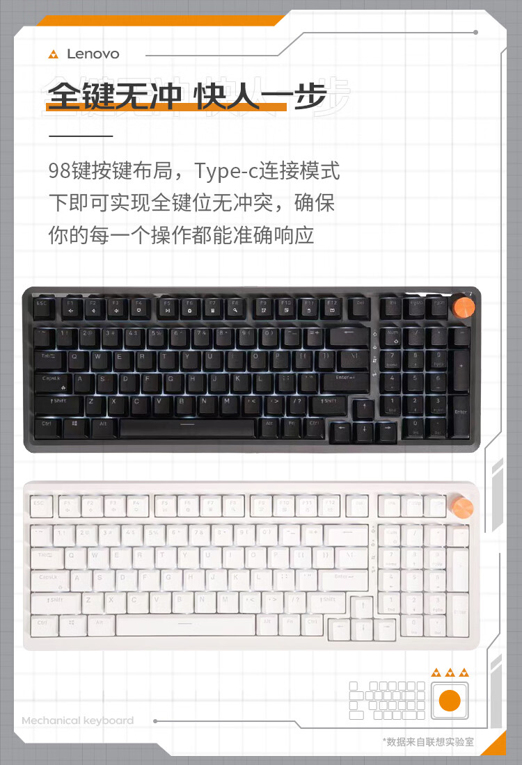 联想/LENOVO MK9 键盘 机械键盘有线游戏键盘98键红轴电竞专用电脑办公配列单光GASKET结构音量旋钮 曜石黑