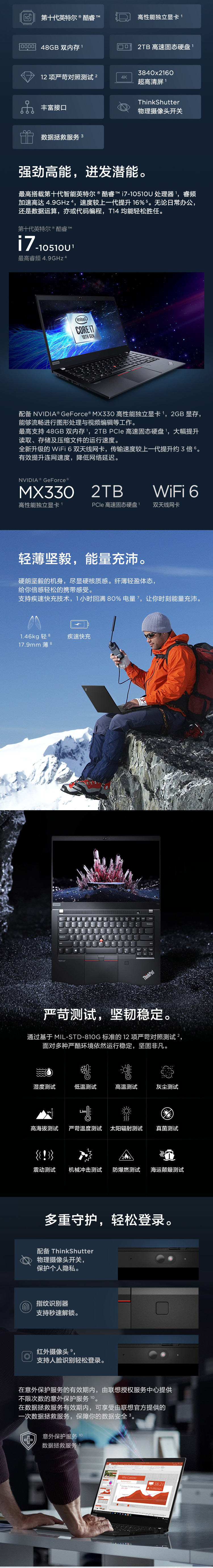 联想ThinkPad T14 酷睿版 英特尔酷睿i5 2020款 4FCD 14英寸轻薄笔记本电脑 i5-10210U 8G 512GSSD 2G独显