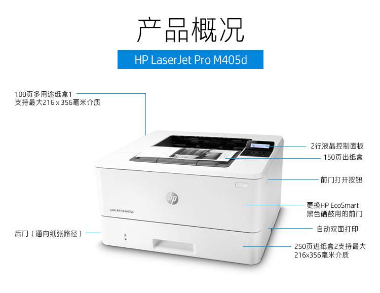 惠普(HP) M405d专业级激光打印机 多功能一体机 液晶显示屏 自动双面打印 USB