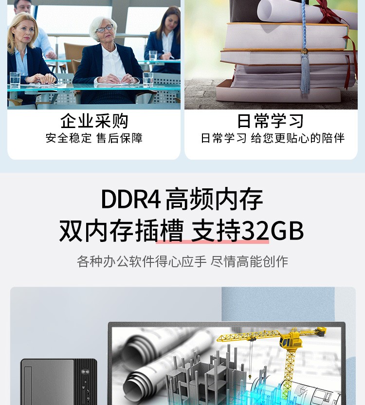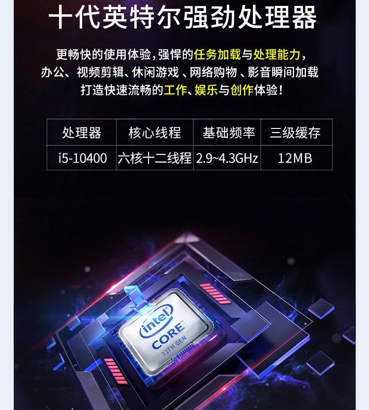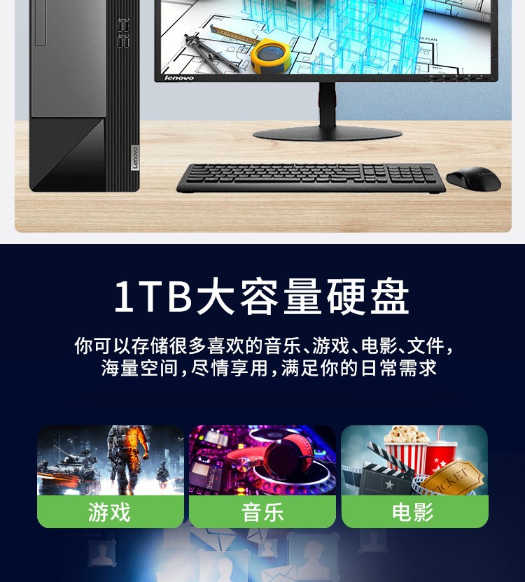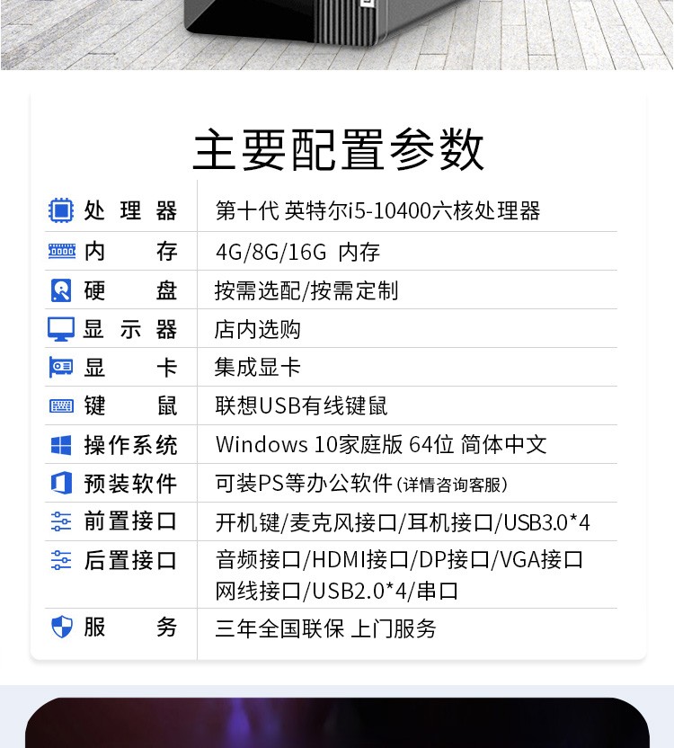 联想/LENOVO M460 台式计算机 酷睿i5-10400六核商用办公电脑 i5-10400 16G内存 256+512G固态 23.8英寸显示器