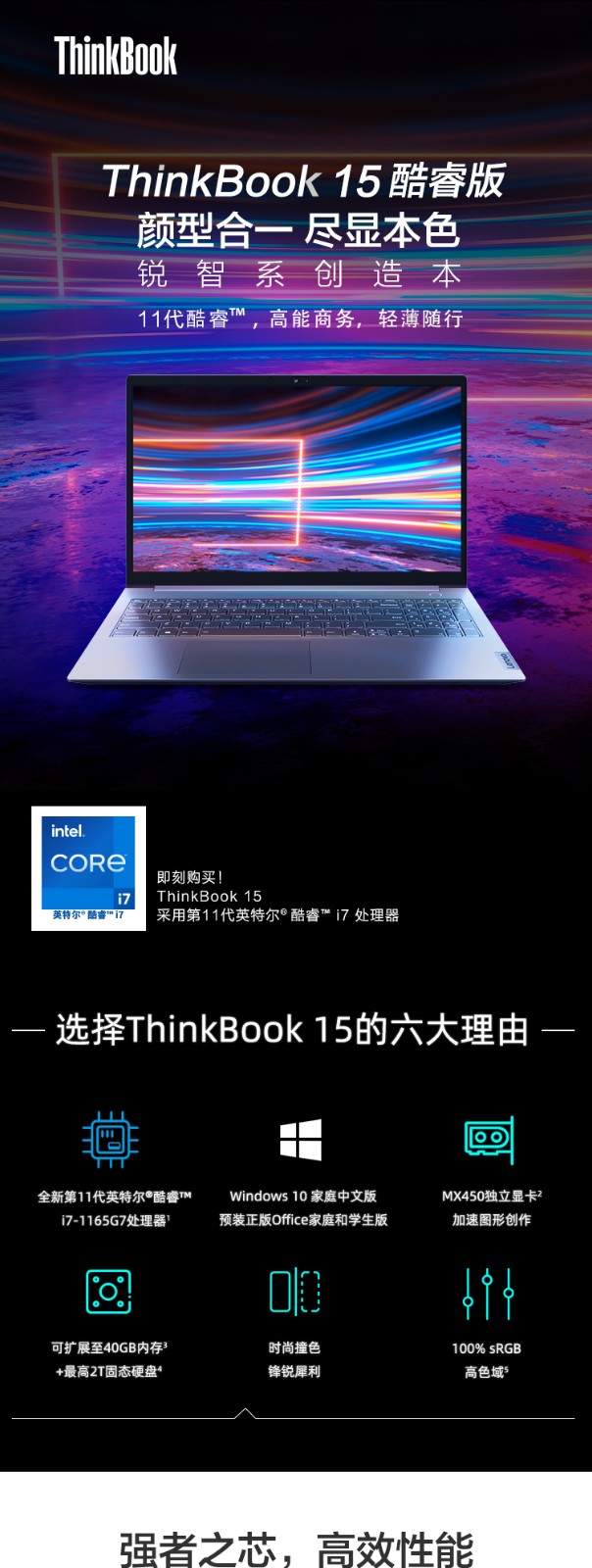 联想ThinkBook 15 2021款 酷睿版 十一代英特尔酷睿i5 15.6英寸轻薄笔记本电脑 ThinkBook 15 11代处理器 11代i5 16G 512G 高色域@57CD
