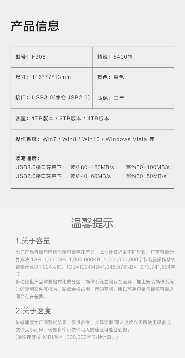 联想/LENOVO F308 移动硬盘 USB3.0 2.5英寸 商务黑 机械硬盘(F308经典)