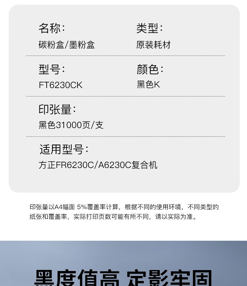 方正/Founder FT6230CK 粉盒 原装黑色碳粉墨粉盒耗材(适用于方正FR6230C/A6230C)约印31000页