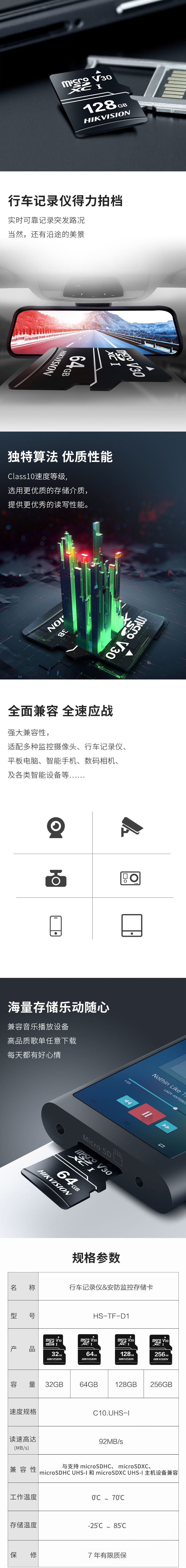 海康威视 HIKVISION HS-TF-D1 U盘/存储卡 TF闪存卡 128GB C10 V30 读速高达92MB/s 适用行车记录仪 安防监控摄像头