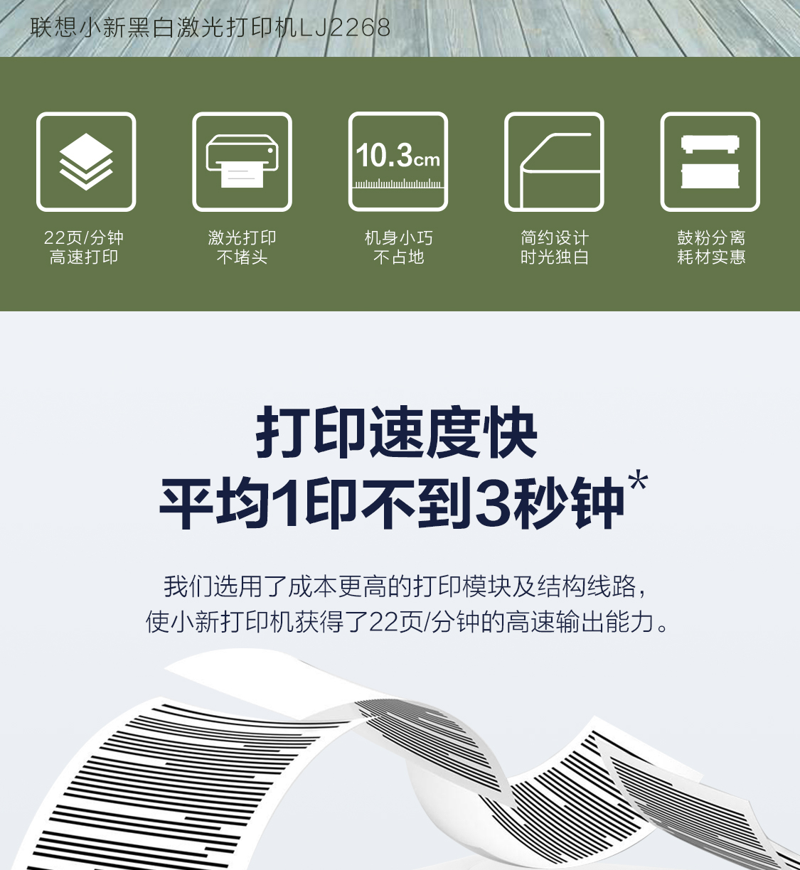 联想(Lenovo)小新LJ2268 黑白激光打印机 小型商用办公家用打印