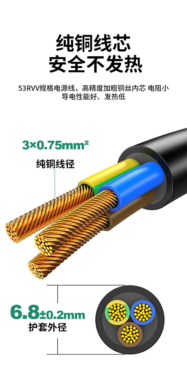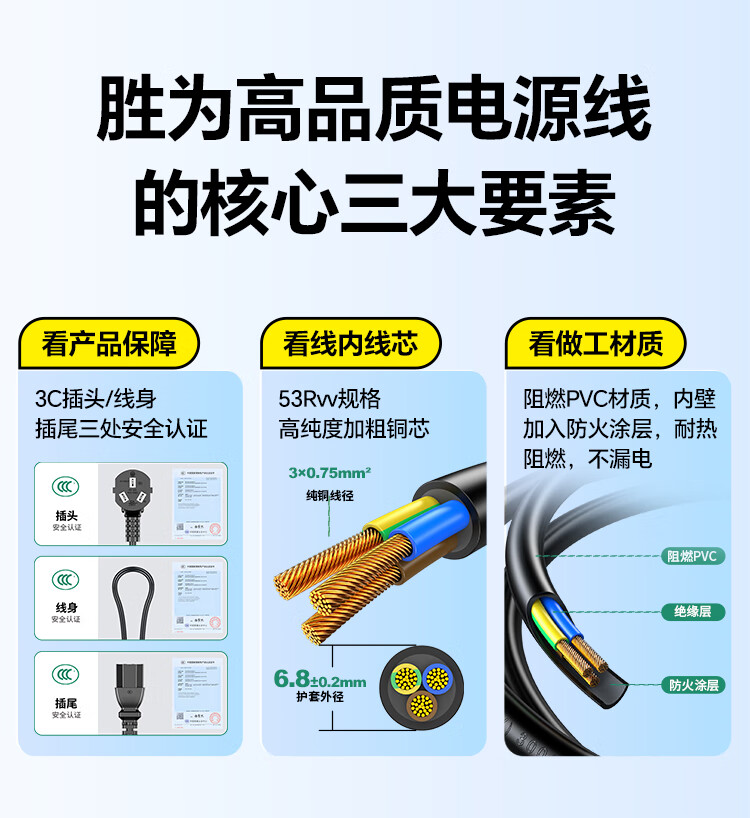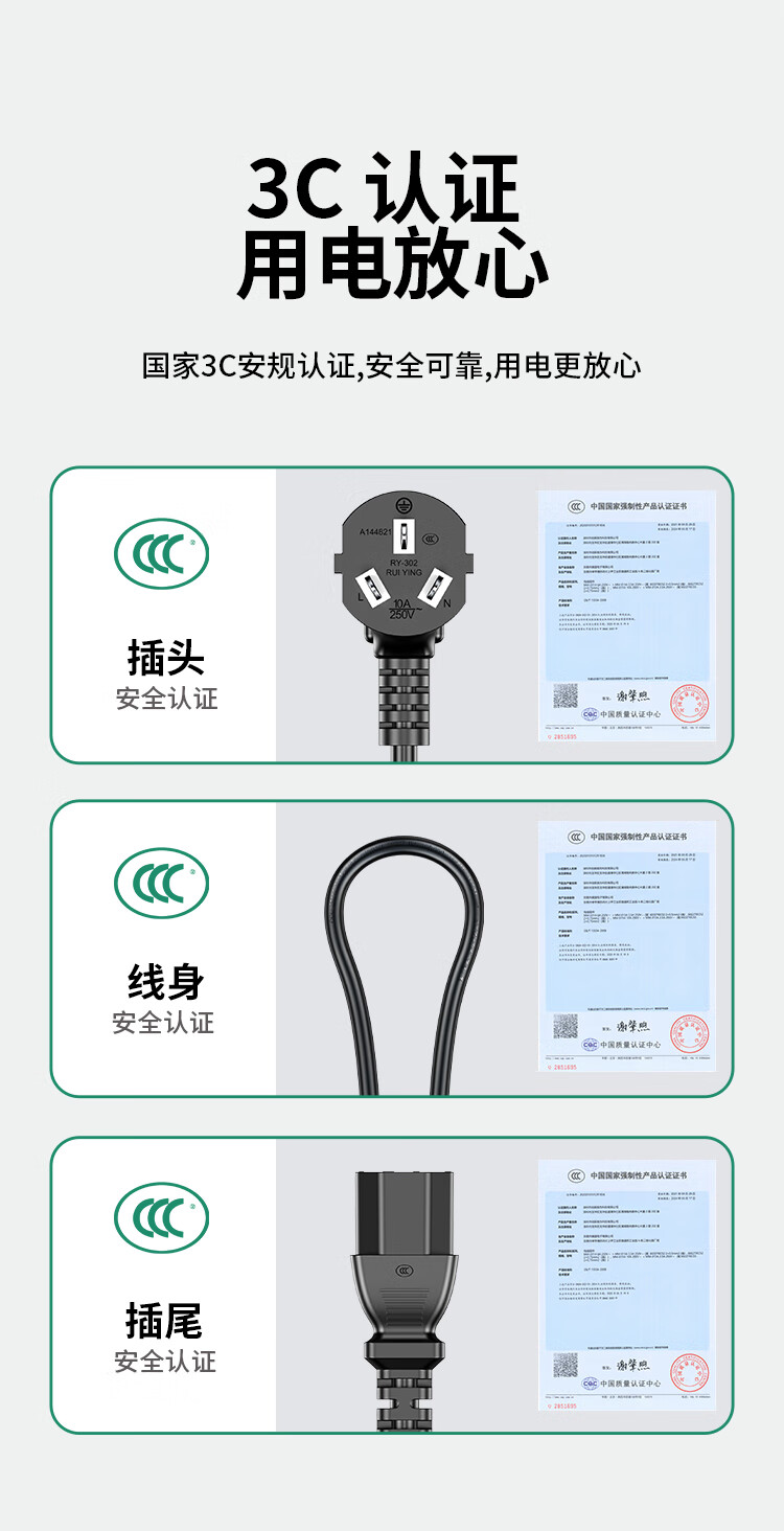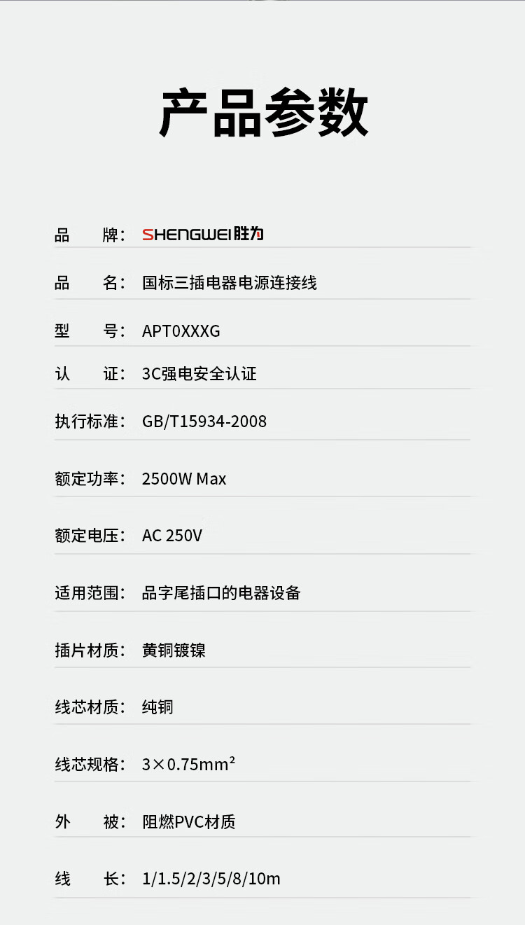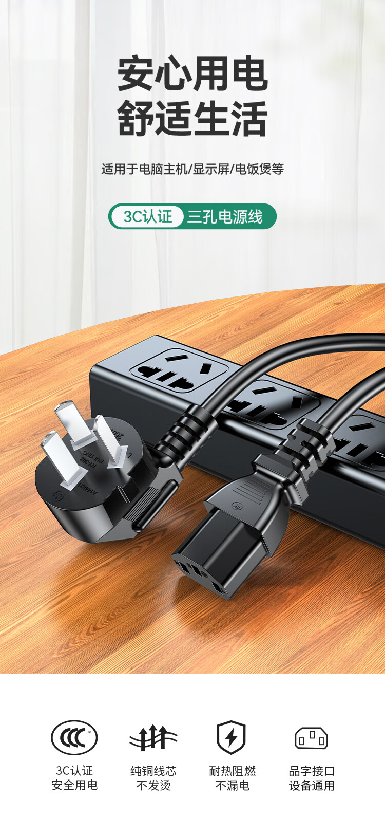 胜为/shengwei APT0020G 数据线 电脑显示器主机电源线三孔三芯品字尾带3C安全认证