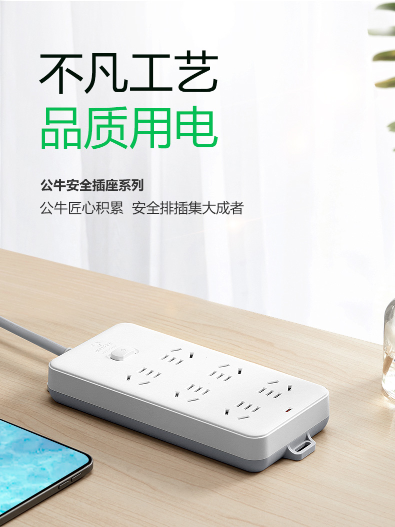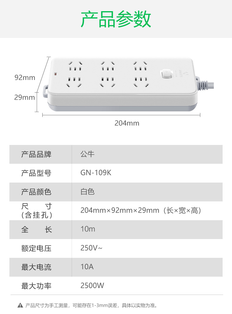 [克隆商品] 公牛/BULL GN-109K 电源插座和转换器 插座/插线板/插排/排插/接线板/拖线板 6位总控全长10米