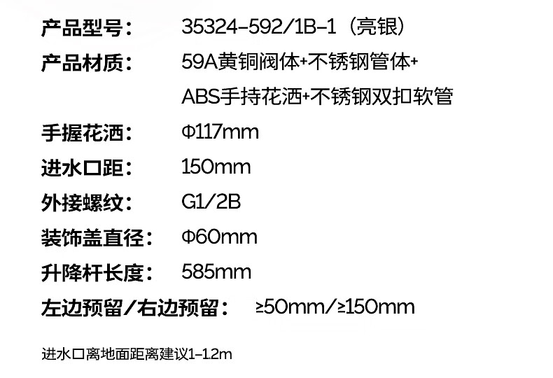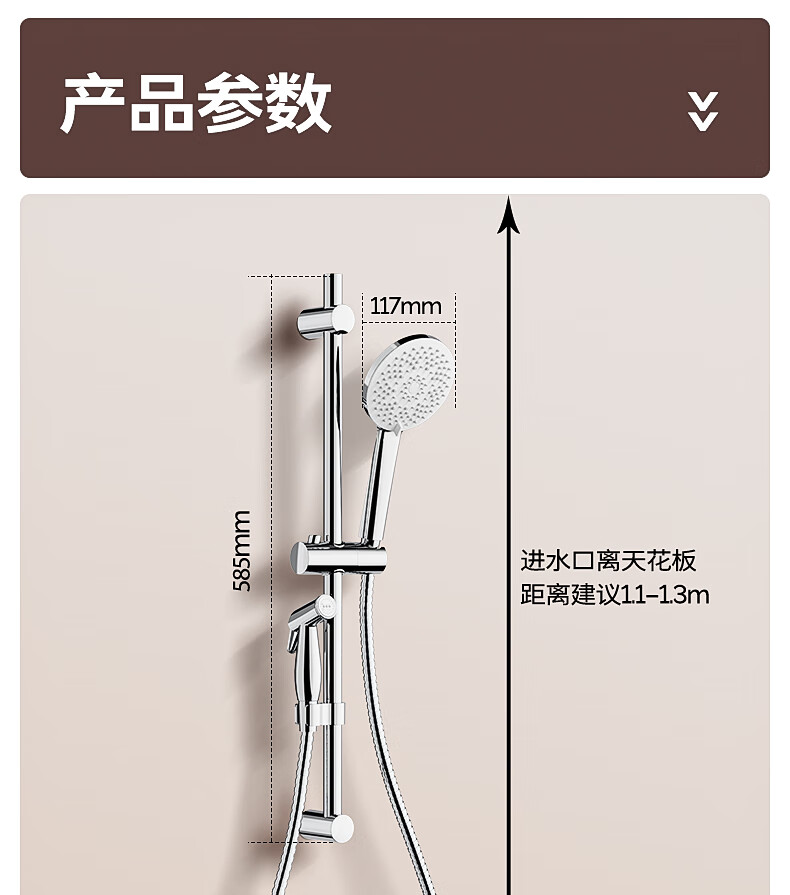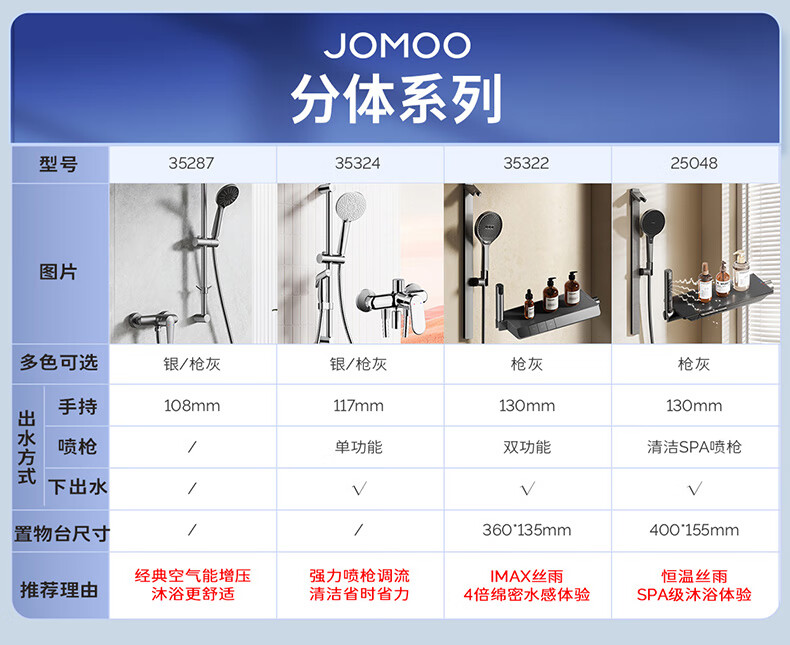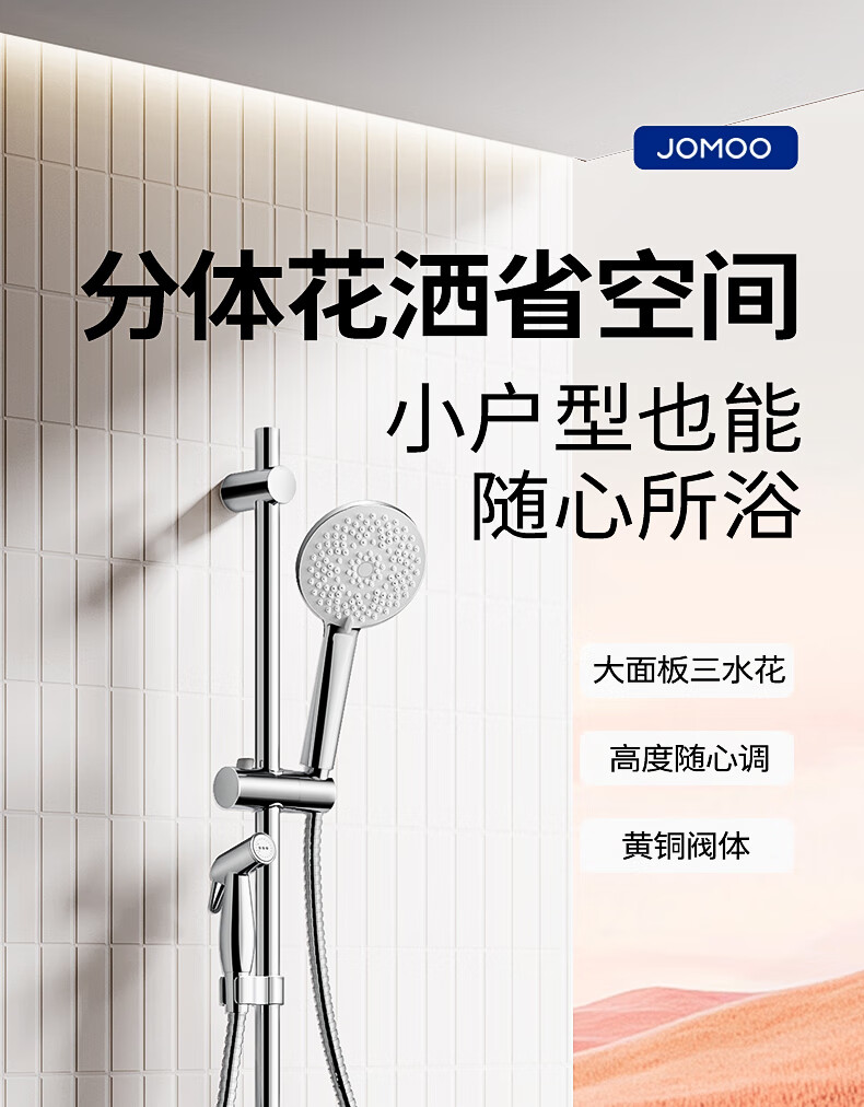 九牧/JOMOO 35324-592 淋浴器 亮银集成升降硅胶除垢三功能分体淋浴器喷枪款