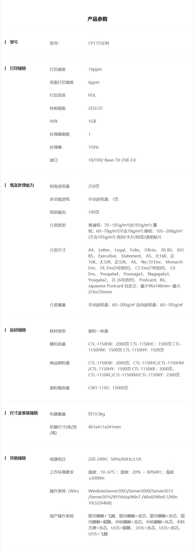 奔图/PANTUM CP1155DN A4 彩色打印机 A4彩色激光单功能打印机 自动双面打印 支持有线网络打印
