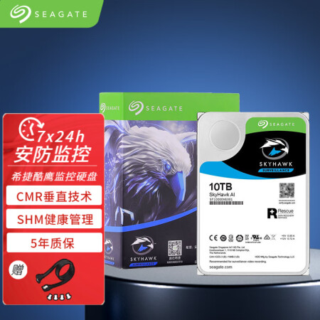 希捷/Seagate ST10000VE001 移动硬盘 监控硬盘 酷鹰AI系列 垂直硬盘 PMR CMR 机械硬盘 SATA接口 3.5英寸硬盘 10TB