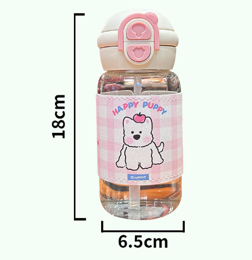 华象 8805 杯 隔热玻璃杯卡通吸管杯学生耐高温便携水杯送皮套