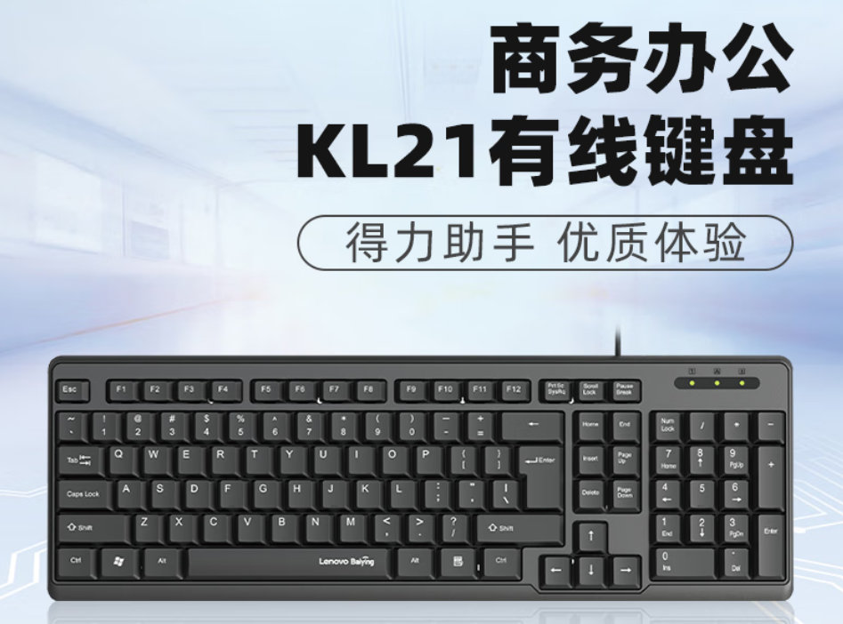 联想/LENOVO KL21 键盘 有线键盘 电脑办公键盘 笔记本台式机一体机键盘黑色 USB