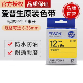 爱普生/EPSON LK4YBP 标签打印纸/条码纸 标签机色带标签带适用LW-K400 不干胶标签纸LW-600P 黄底黑字 12mm