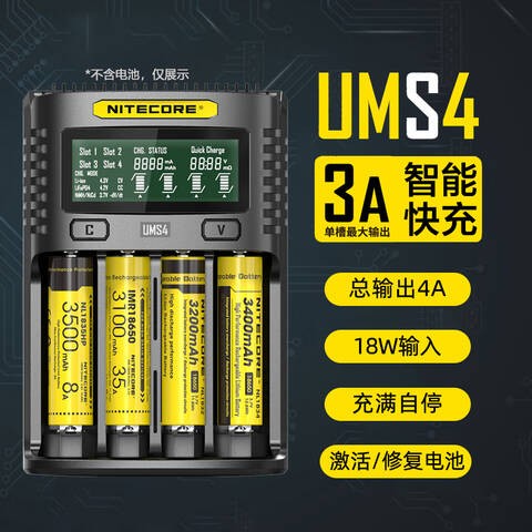 奈特科尔/NITECORE UMS4 相机电池/充电器 锂电池智能充电器18650/21700/5号/7号电池快充座充 UMS4快充+快充头