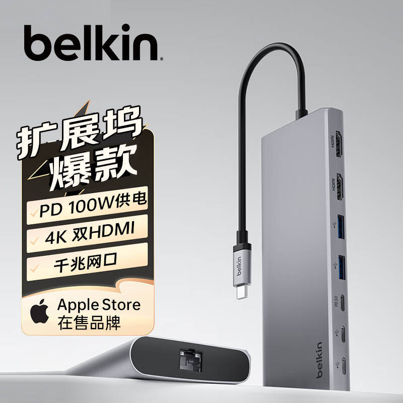 贝尔金/Belkin INC015btSGY-CZ 集线器 Type-C扩展坞 双HDMI超清4K拓展 10Gbps高效8合1 i